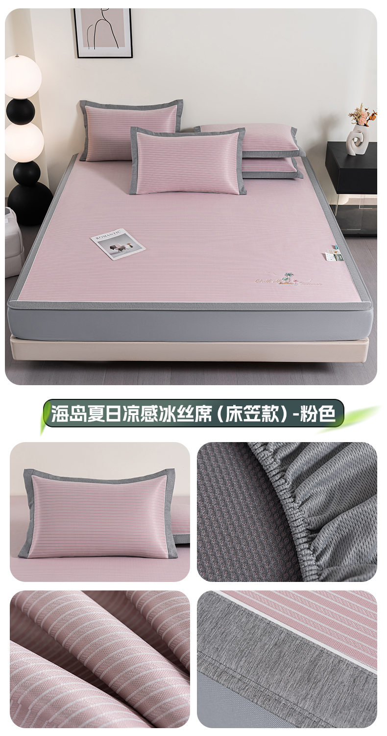 (总)2023新款超精密冰丝席-小斜纹系列-床笠款藤席凉席竹席,粉色,蓝色,绿色,银灰