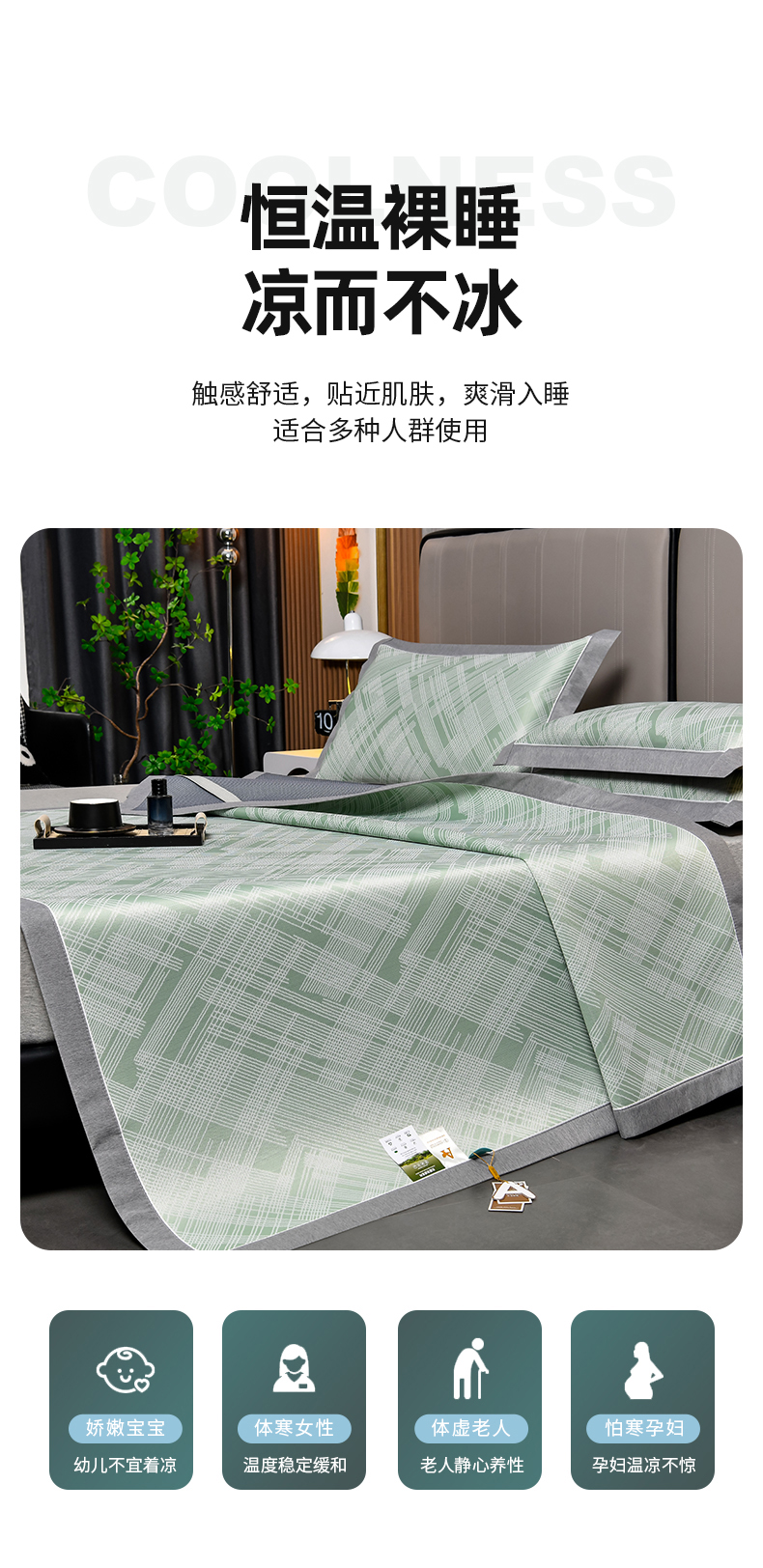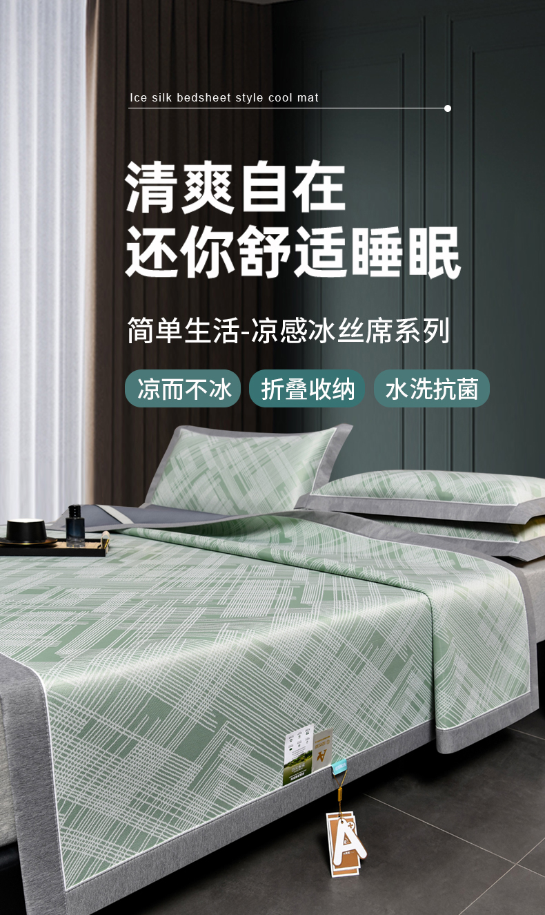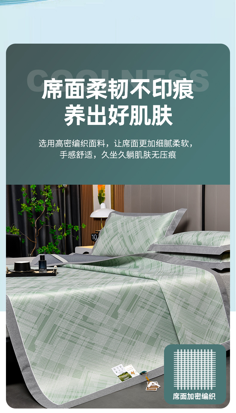 商品名称:小牛席业 2026新款清凉冰丝席凉席席子系列-简单生活 简单生活-绿色
