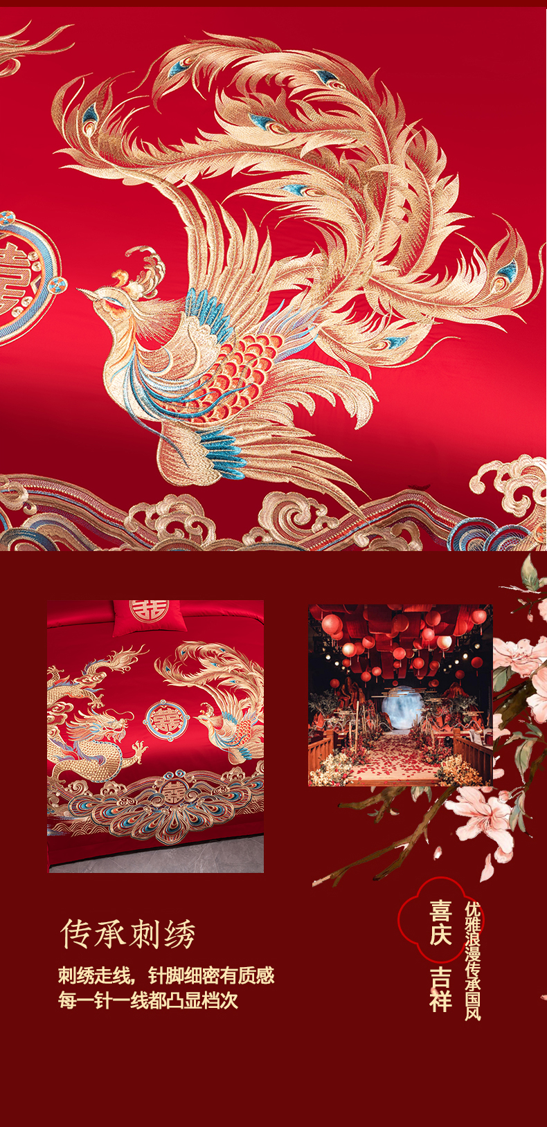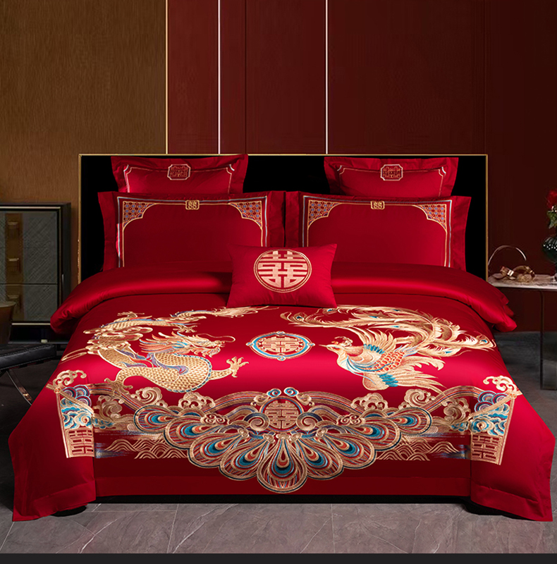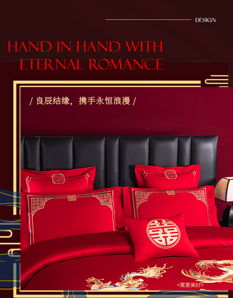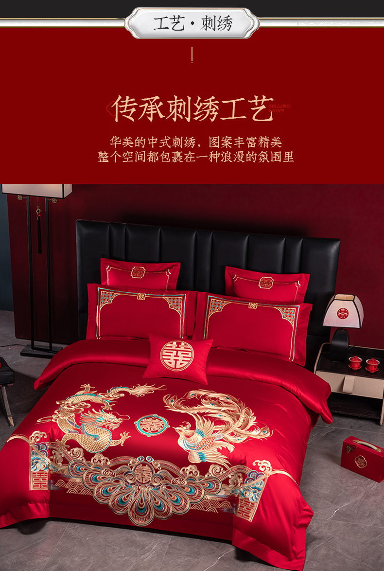 当前位置: 91家纺网 > 商品网购 > 床品套件 > 四件套 > 婚庆四件套 > 博之洋婚庆 2026新款新中式亲肤棉婚庆大红刺绣系列四件套 盛世华章-金