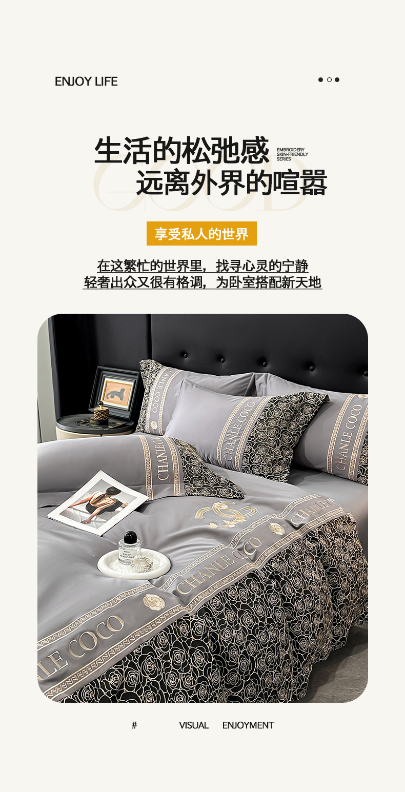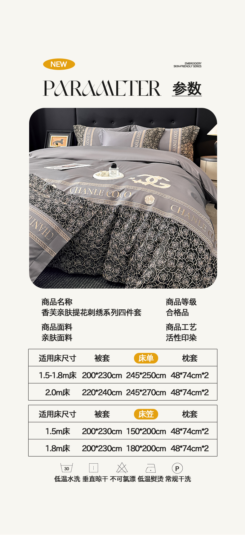 当前位置: 91家纺网 > 商品网购 > 床品套件 > 四件套 > 其它四件套 > 置顶家纺 2026新款香芙亲肤提花刺绣四件套 香芙-高级灰