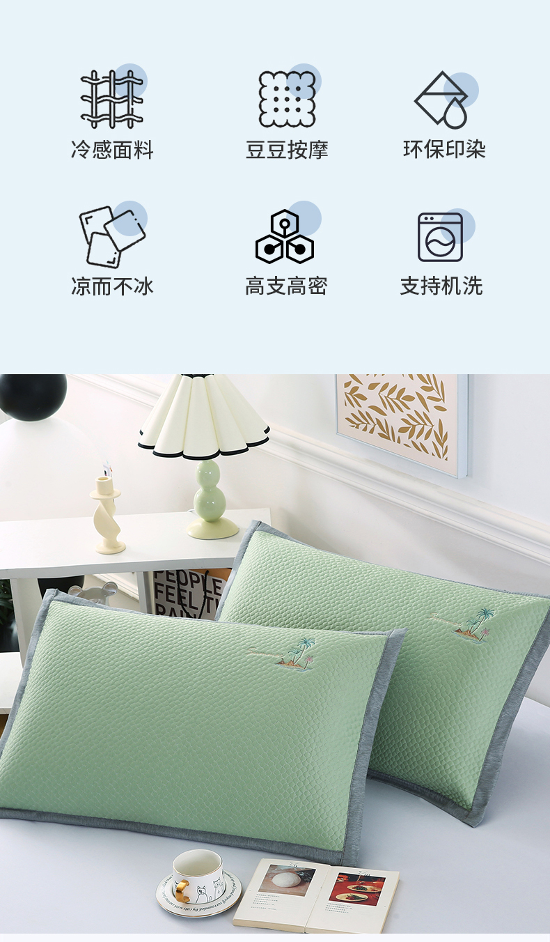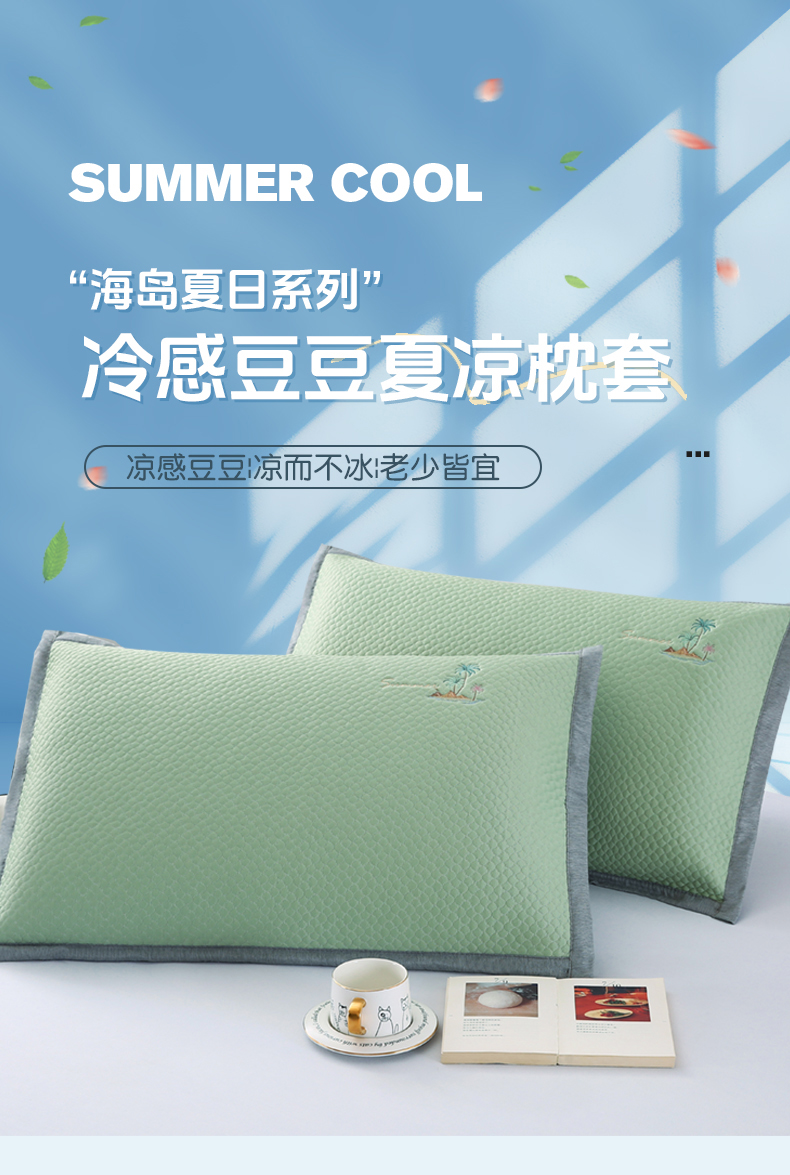 小牛席业 2026新款海岛夏日冷感豆豆夏凉枕套 绿色