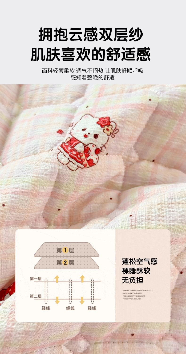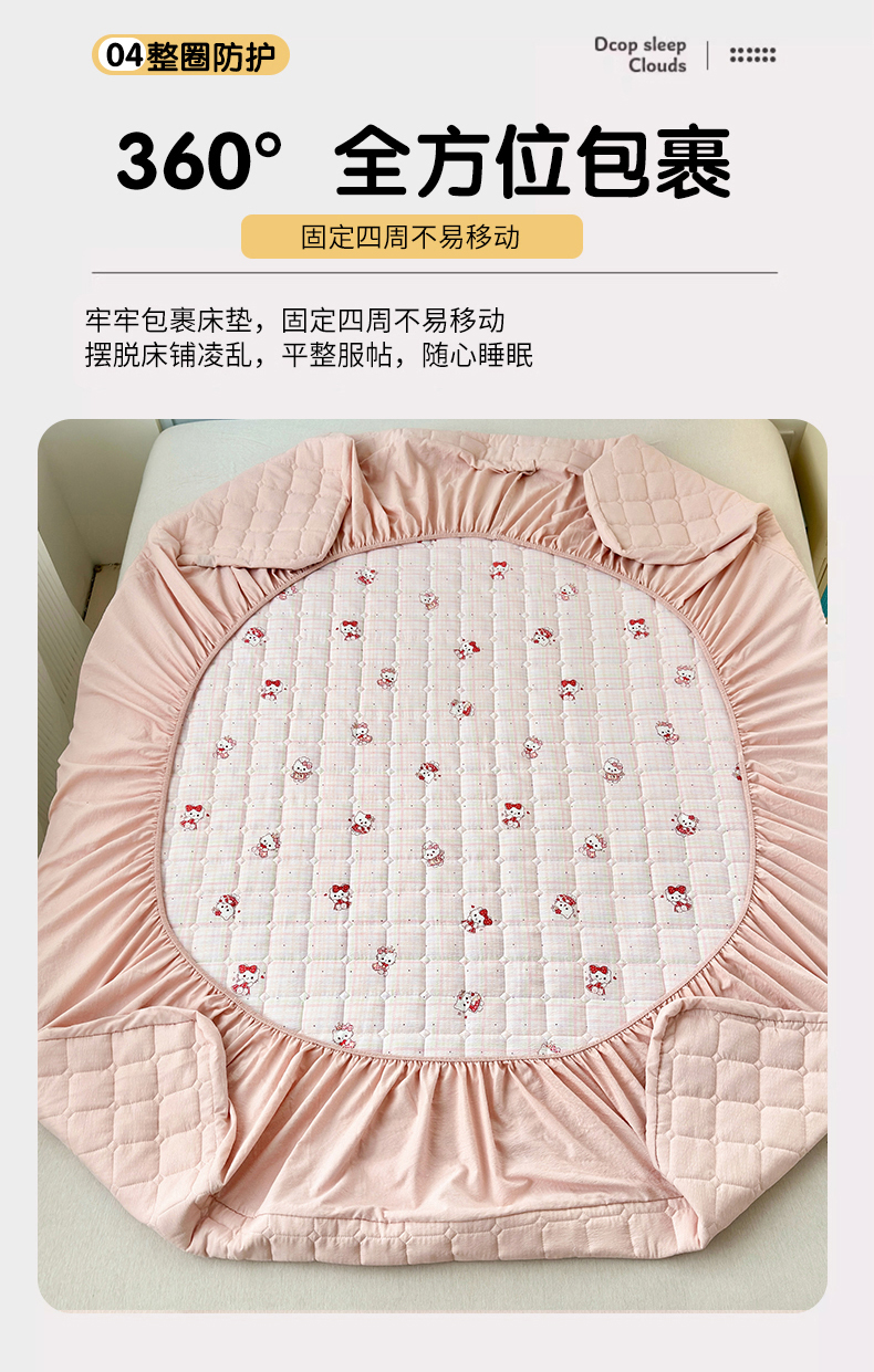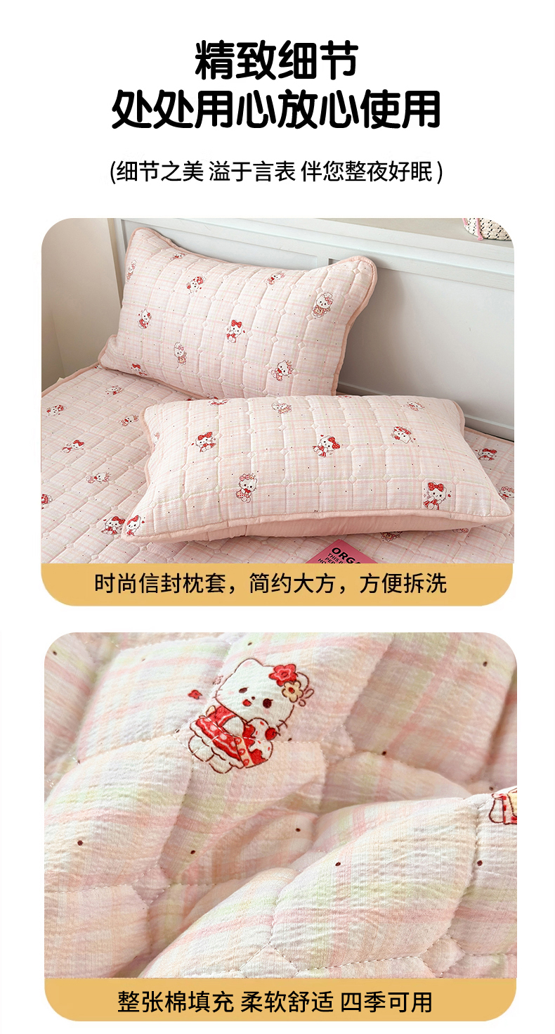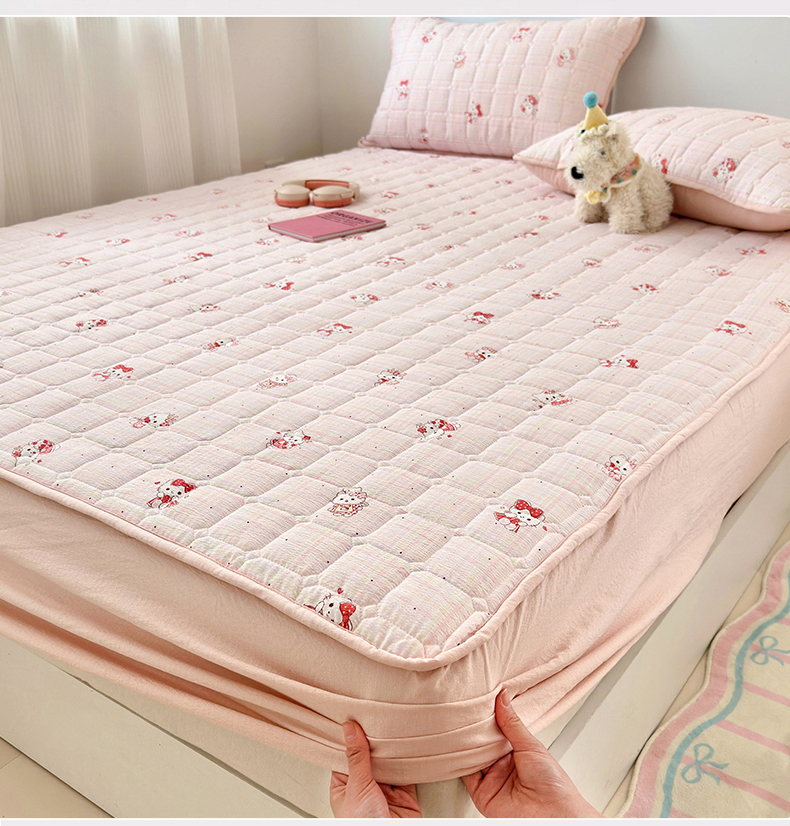 丽美人家纺 2026新款双层皱皱纱大豆夹棉床笠单床笠床笠单件 JM粉格猫咪