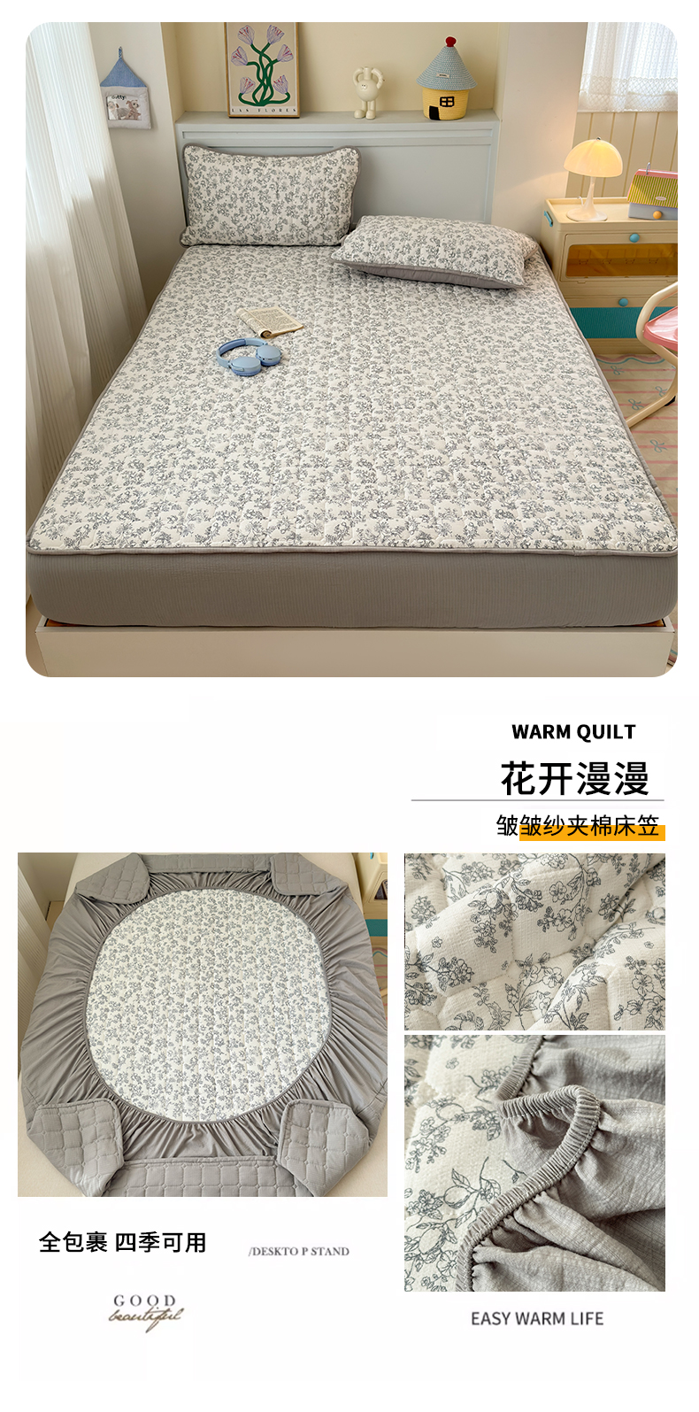 • 91家纺网 家纺一手货源 找家纺 (总)丽美人家纺 2026新款双层皱皱纱大豆夹棉床笠单床笠床笠单件,JM花开漫漫,JM贝拉,JM布兰卡,JM粉格猫咪,JM格仔萌宠,JM可爱小狗,JM腊肠狗,JM乐园,JM玛丽,JM时光,JM月境骑踪,JM紫雾叶兔