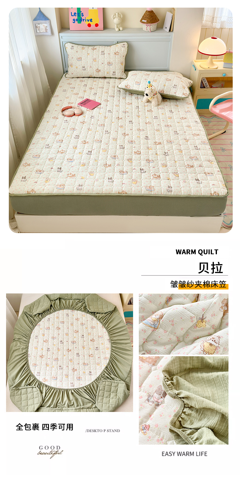 (总)丽美人家纺 2026新款双层皱皱纱大豆夹棉床笠单床笠床笠单件,JM花开漫漫,JM贝拉,JM布兰卡,JM粉格猫咪,JM格仔萌宠,JM可爱小狗,JM腊肠狗,JM乐园,JM玛丽,JM时光,JM月境骑踪,JM紫雾叶兔