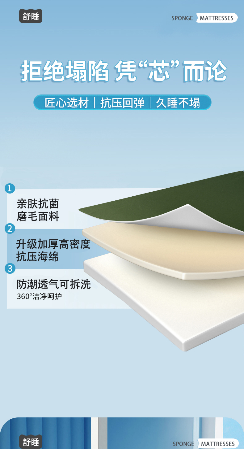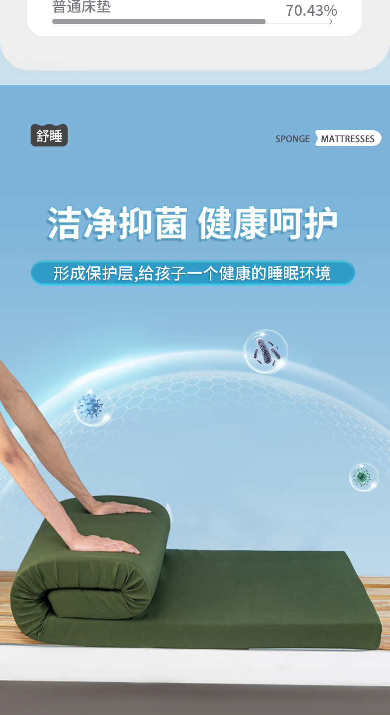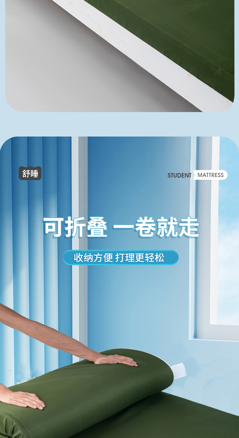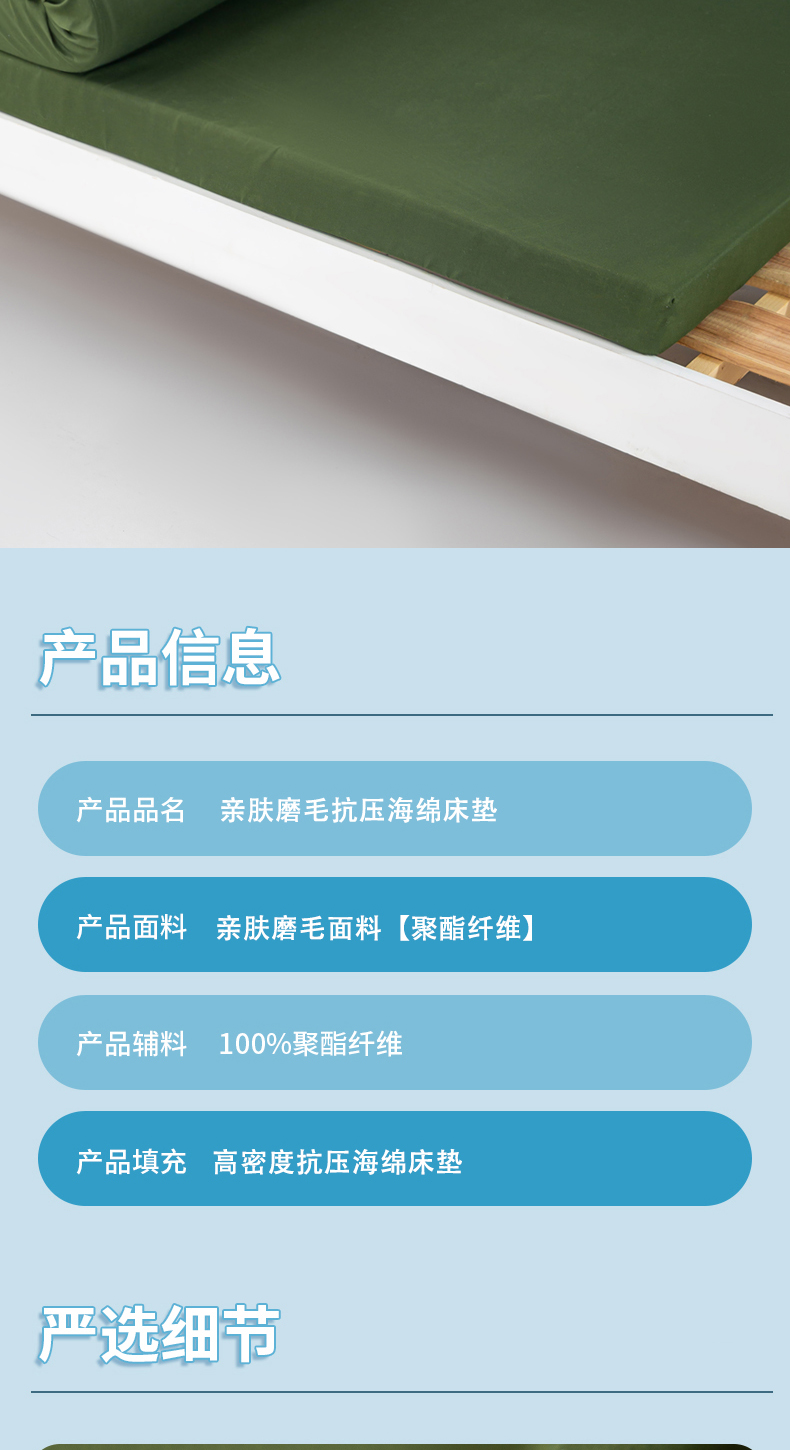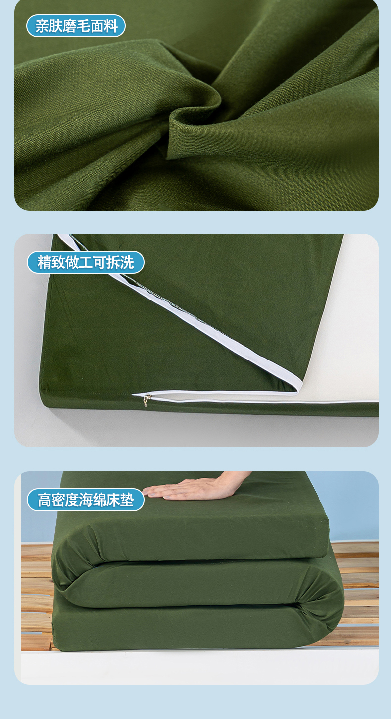 商品名称:优雅星家纺 2026新款亲肤磨毛抗压海绵床垫学生床褥子床垫 海绵军绿