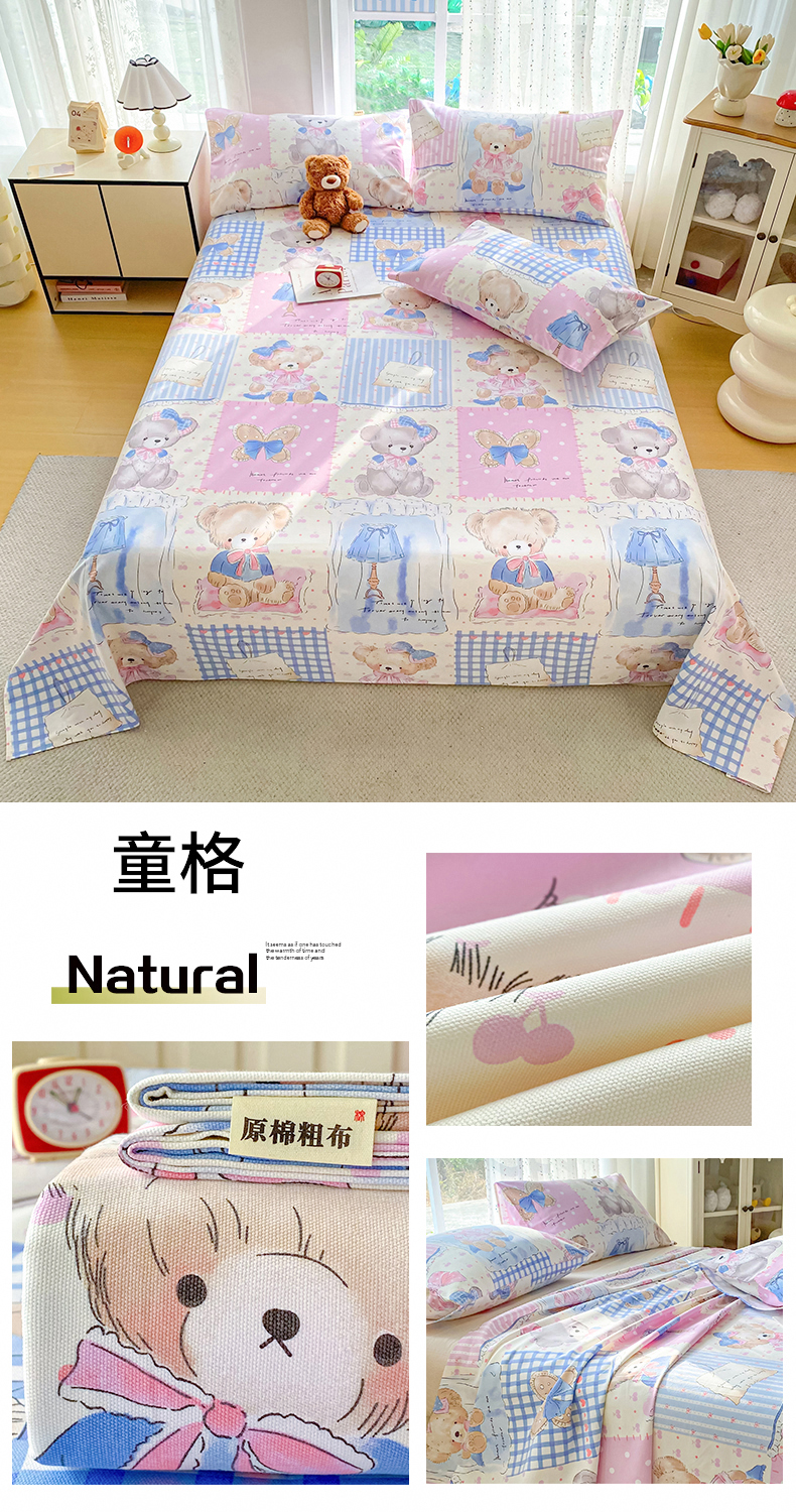 (总)棉乐町家居 2026新款原棉标印花老粗布床单,lucky兔,艾米,傍晚,波西米亚,彩蝶,初见,淡雅,风雅,格子樱桃,花朵熊,花间,花颜,欢乐,灰格,简尚,简兮蓝,可爱熊猫,蓝格,蓝色恋格,蓝心,冷灰,梦幻小鹿,嫩绿,偶遇,浅灰,热恋,条纹小熊,温馨,兮心,小时光,樱花粉,紫罗兰