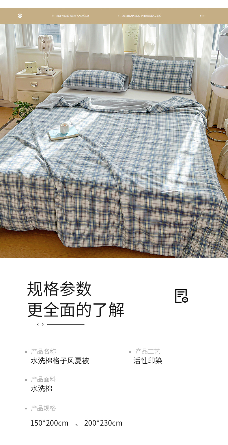 商品名称:纽缦家纺 2026新款水洗棉简约格子风夏被 淡香-绿