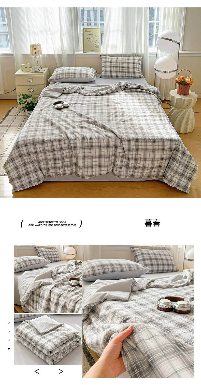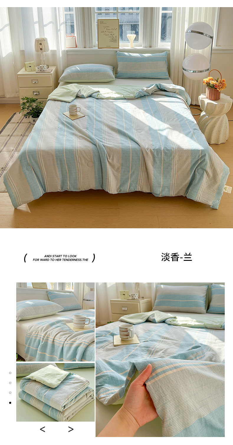 纽缦家纺 2026新款水洗棉简约格子风夏被 淡香-绿