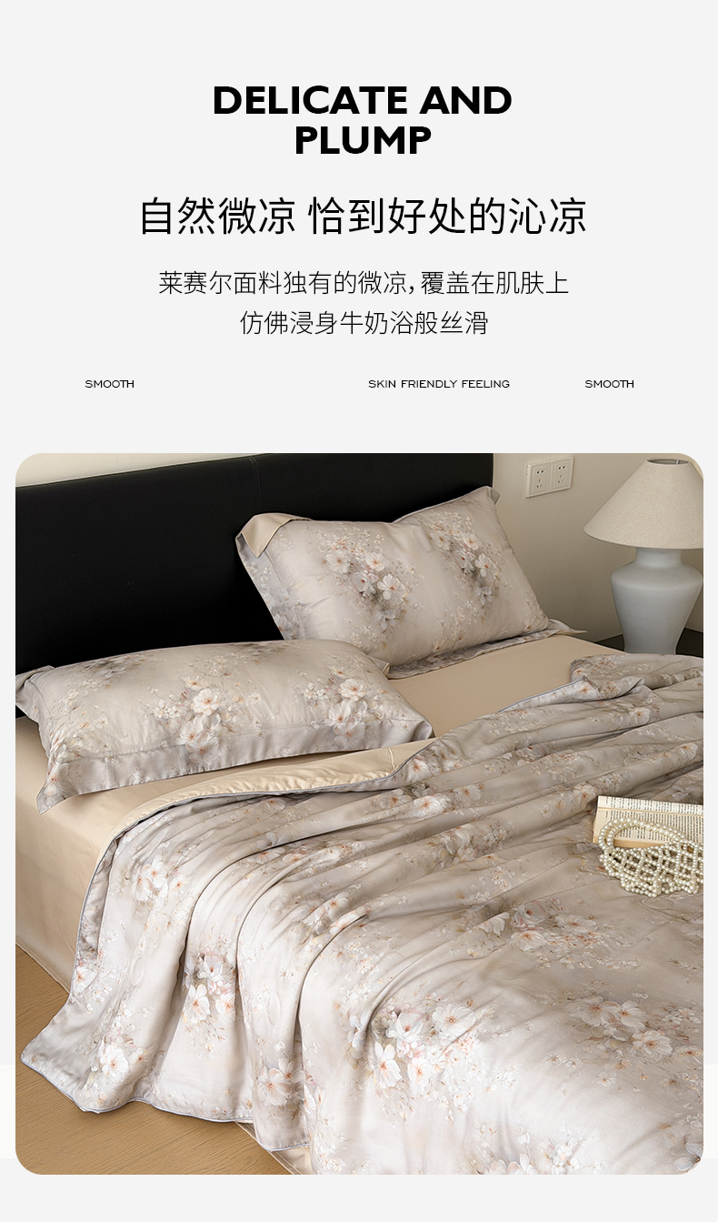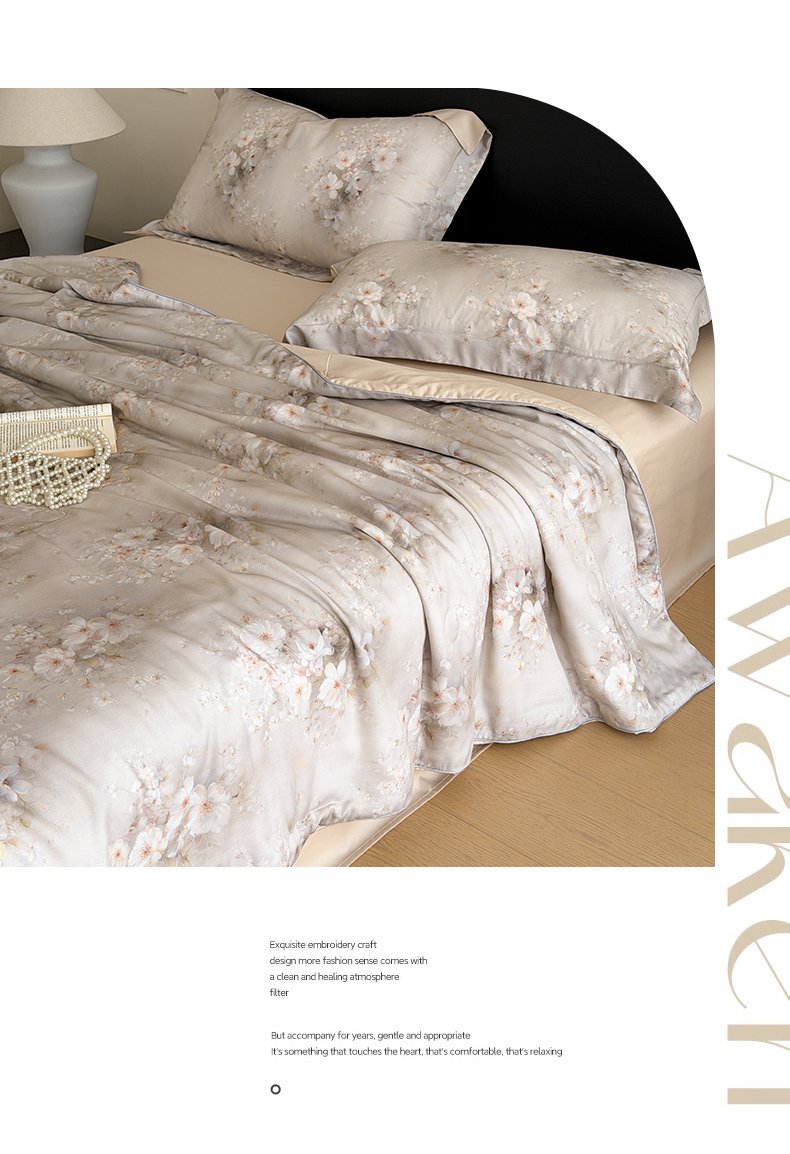 当前位置: 91家纺网 > 商品网购 > 床品套件 > 四件套 > 夏被四件套 > 优彩 2026春夏新款50天丝夏被莱赛尔纤维夏被四件套天丝夏被单夏被单床笠单床单(控价单夏被不低于150) 山栀