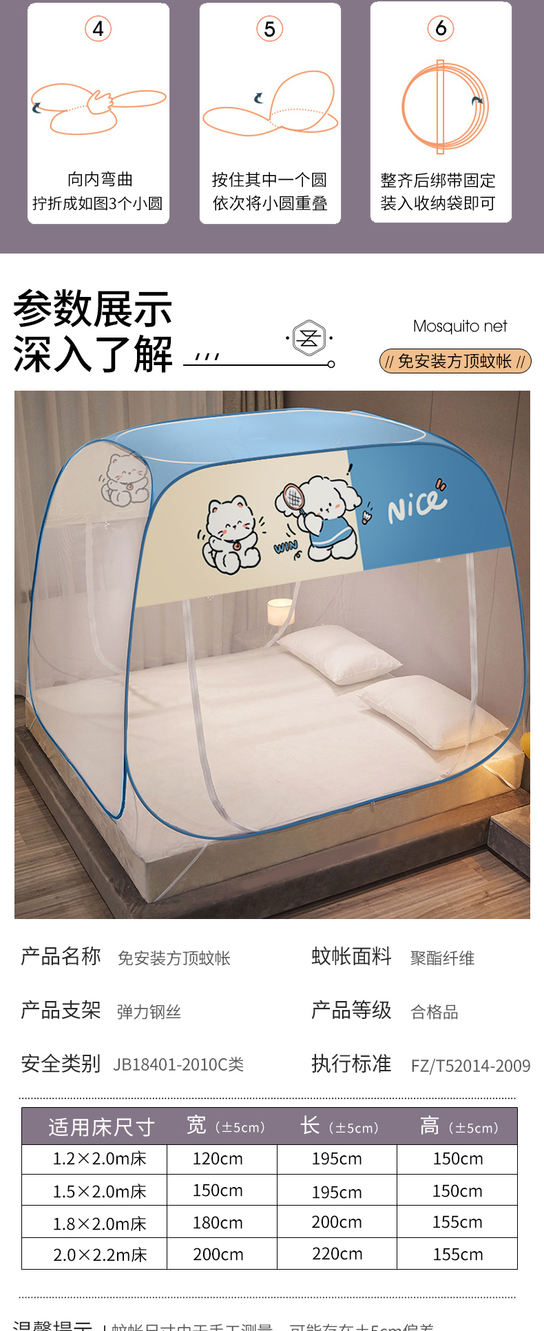 商品名称:豪梦园蚊帐工厂店 2026新款布艺防尘顶款方顶蚊帐 运动狗狗防尘顶款