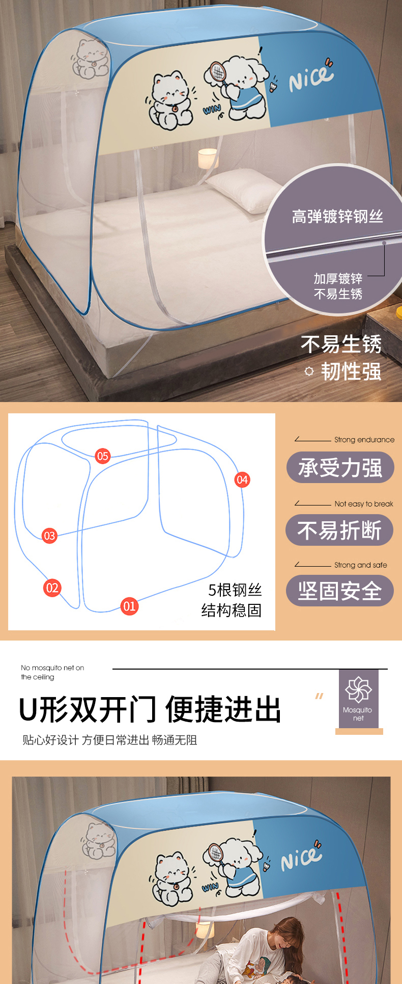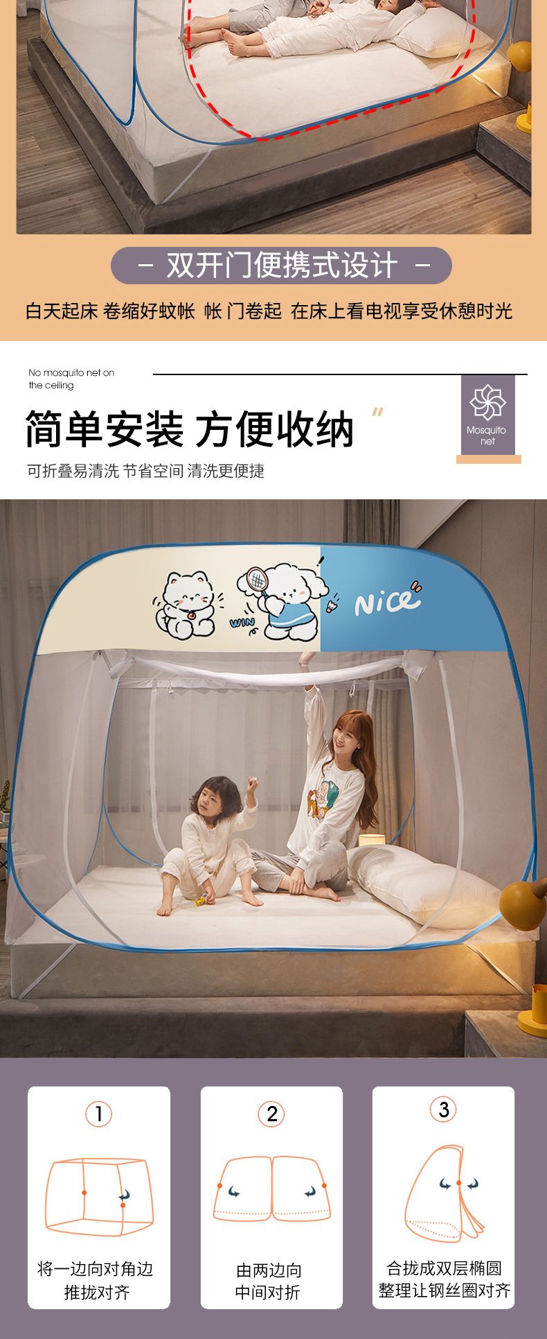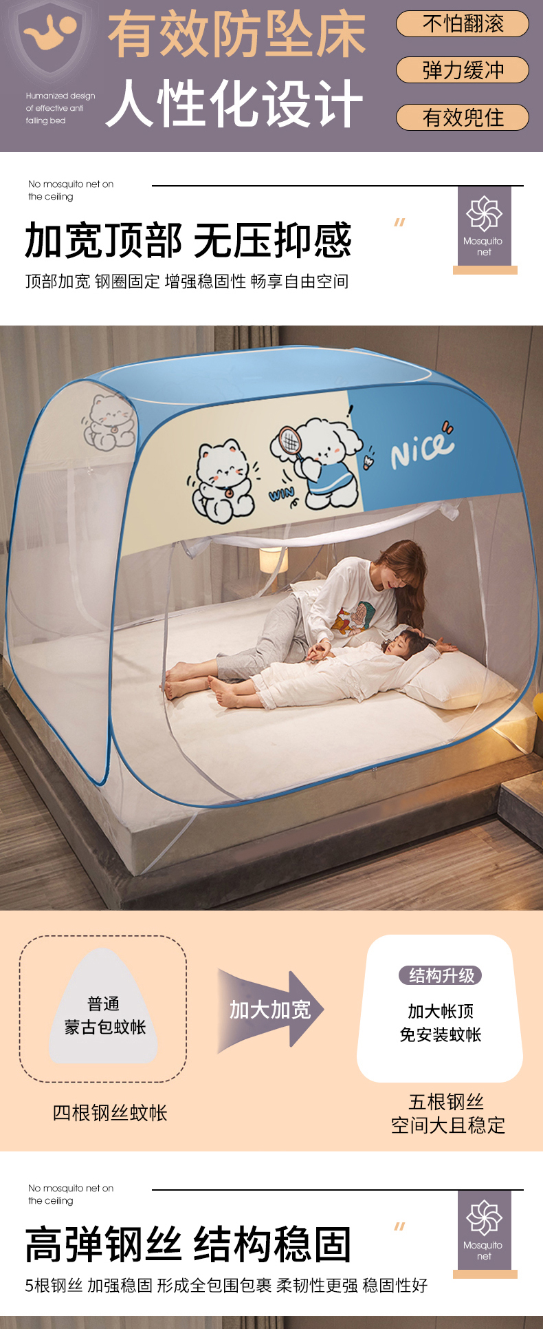(总)豪梦园蚊帐工厂店 2026新款免安装高档布艺+防咬层布边款蒙古包蚊帐,欢乐小熊,宇宙人,太空熊,英文绿,乐符棕,心相事橙