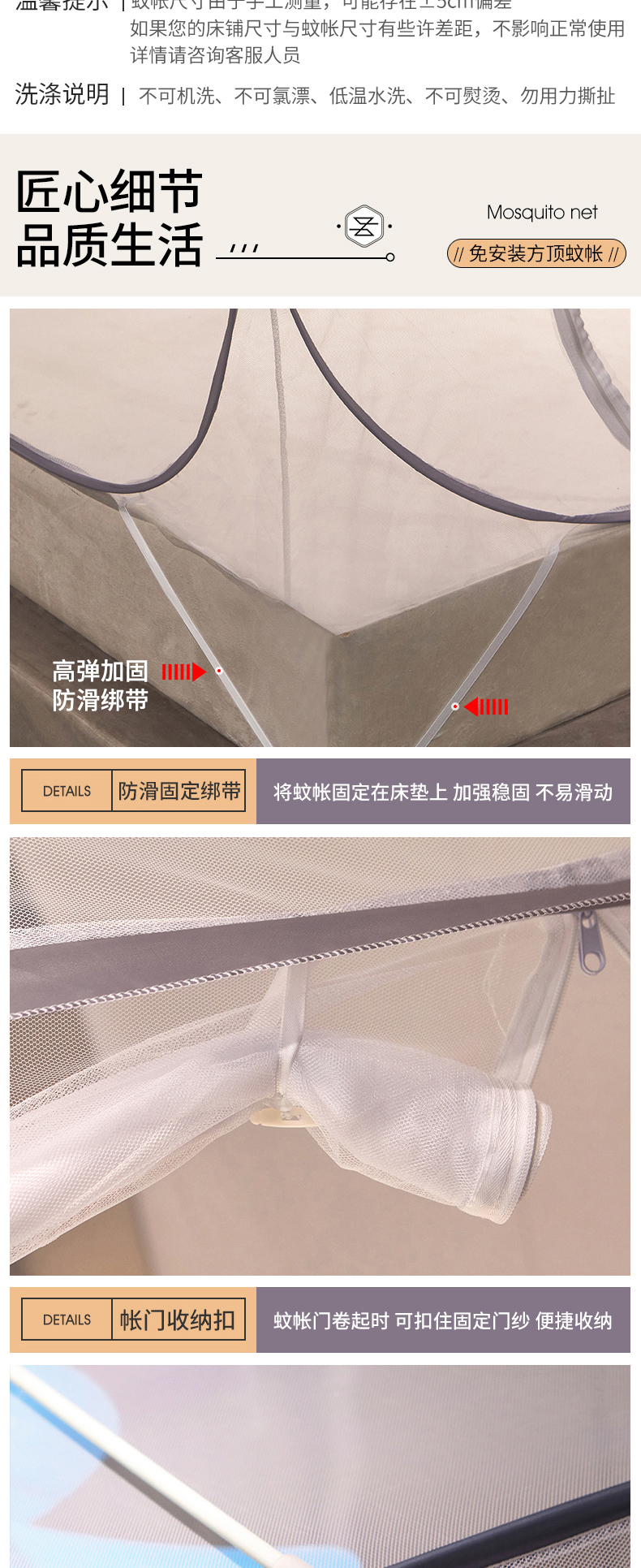 (总)豪梦园蚊帐工厂店 2026新款免安装促量款加密方顶蚊帐,防尘顶-清新灰,网纱顶-清新灰,网纱顶-清新蓝,防尘顶-清新蓝