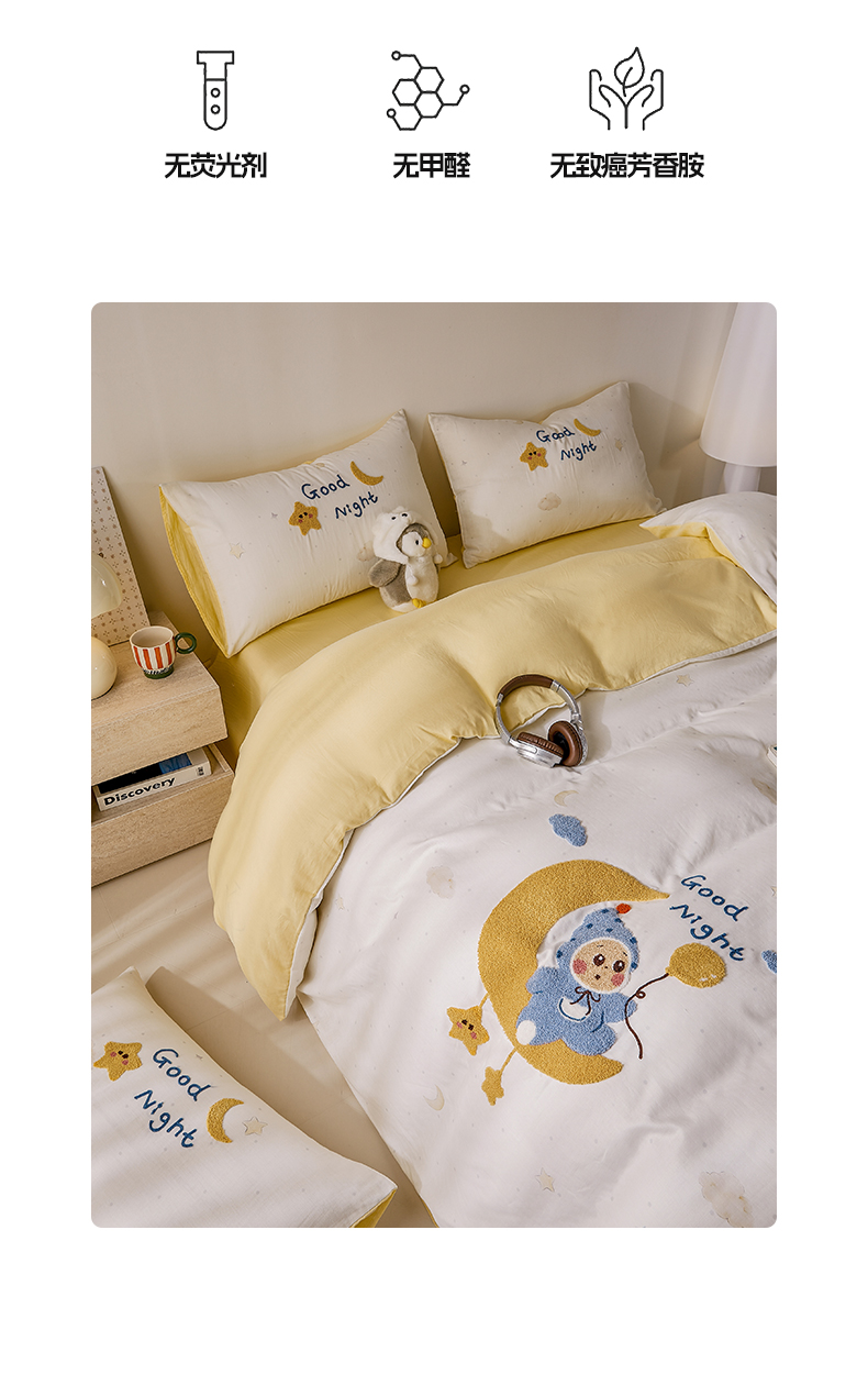 商品名称:(总)麦田家纺 2026新款A类全棉双层纱毛巾绣四件套
