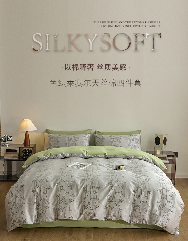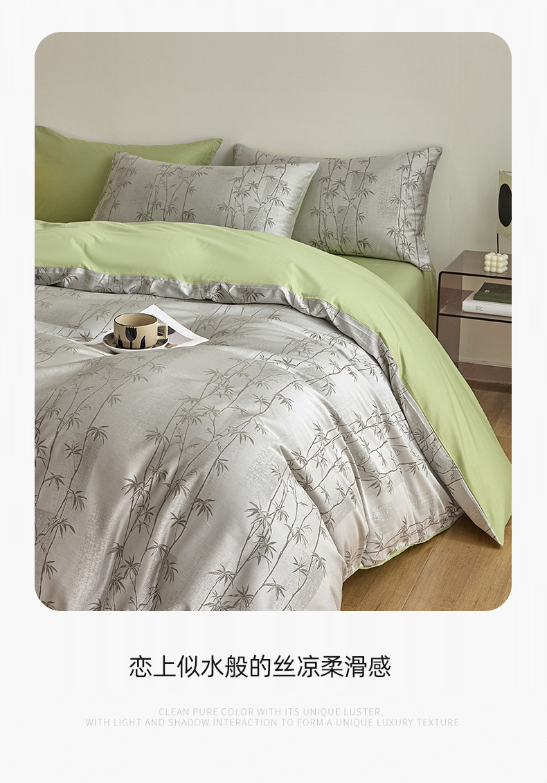 当前位置: 91家纺网 > 商品网购 > 床品套件 > 四件套 > 色织四件套 > 琪格格纺织 2026新款色织天丝棉提花四件套 竹溪-绿