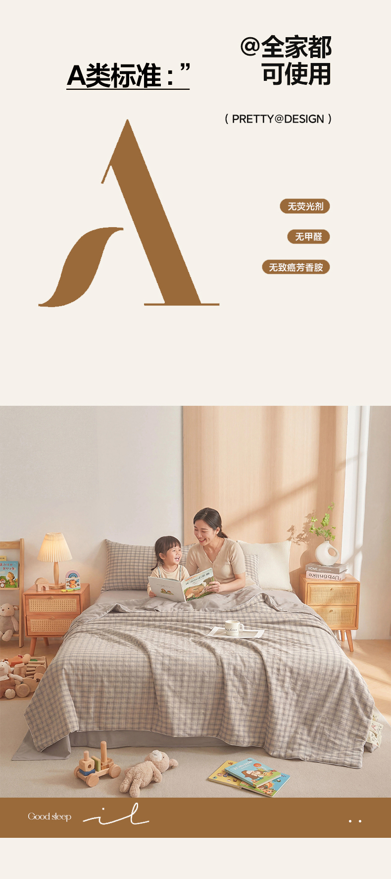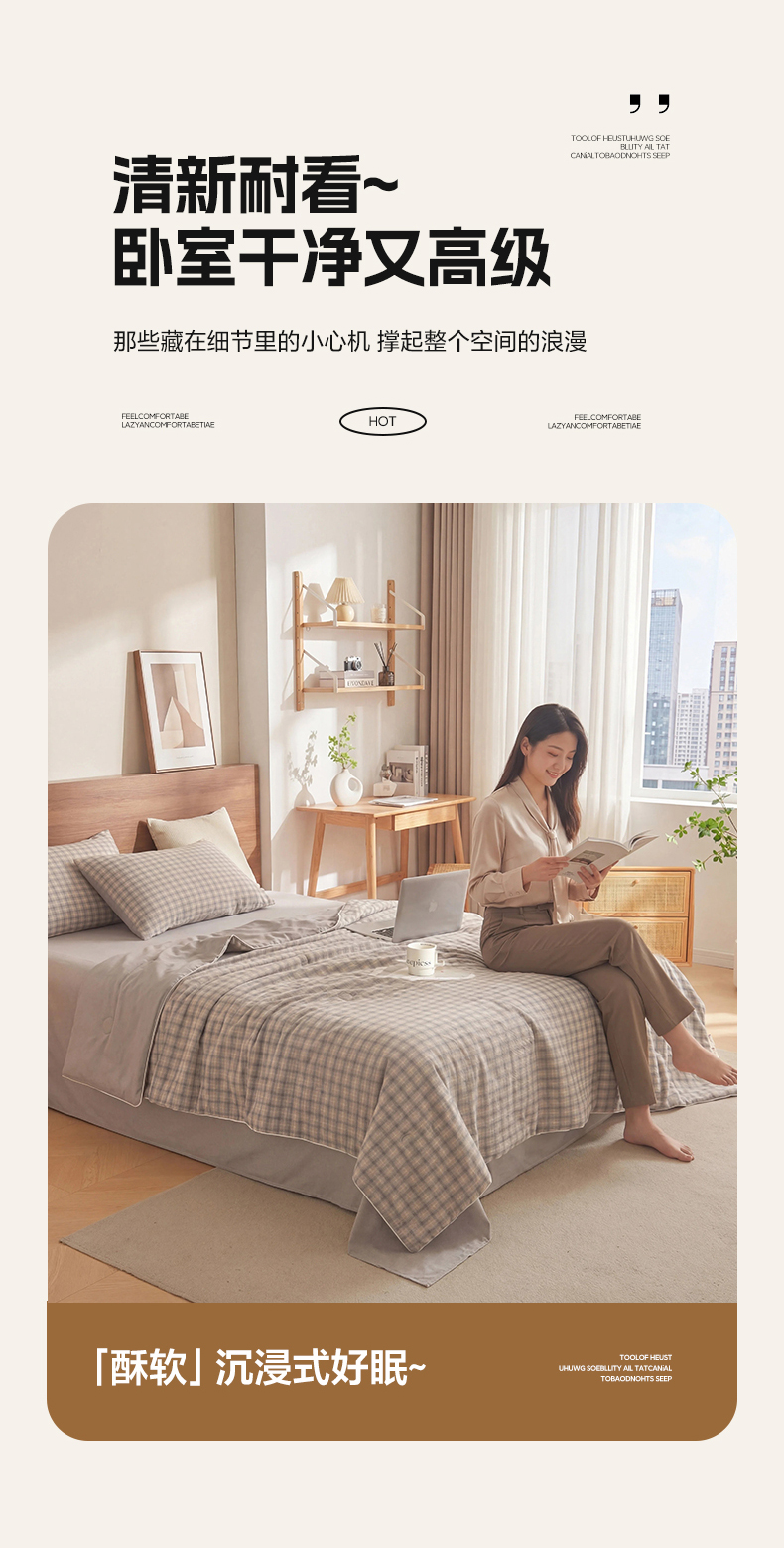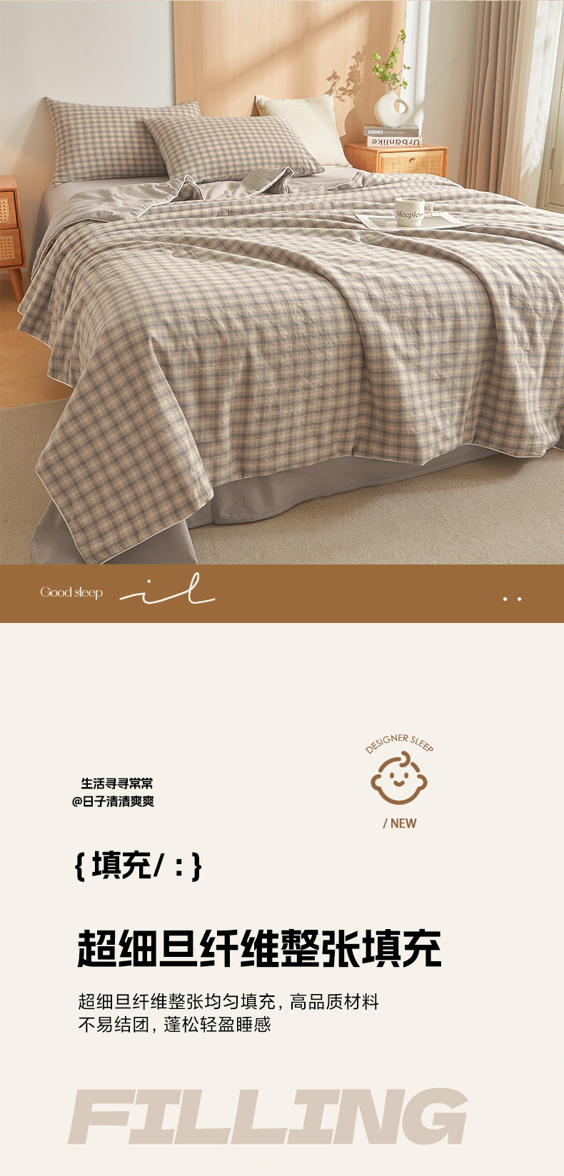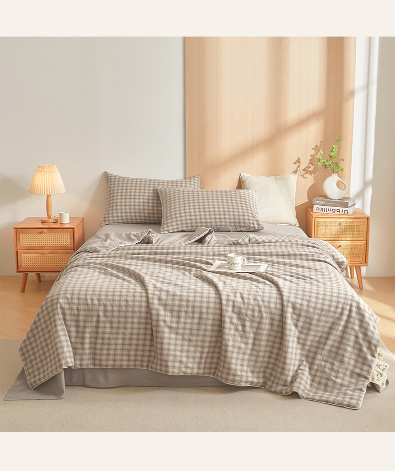 • 91家纺网 家纺一手货源 找家纺 典冠 2025新款A类全棉色织水洗棉夏被夏凉被 焕花灰