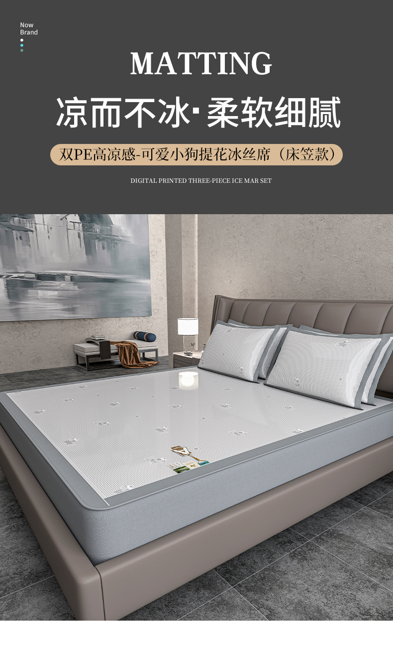 (总)小牛席业 2026春夏新款【实拍风格】PE凉感小碎花提花冰丝席凉席席子(床笠款),灰色,粉色,蓝色,抹茶,香槟
