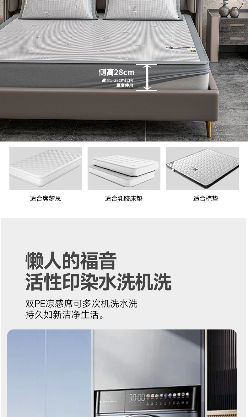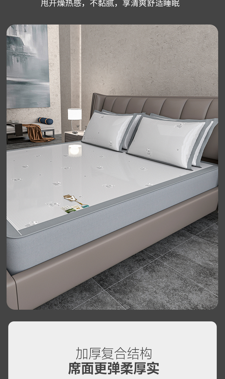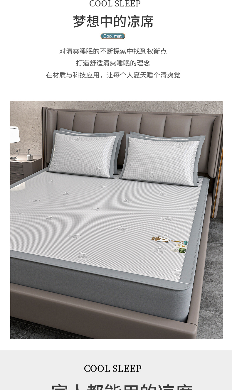 (总)小牛席业 2026春夏新款【实拍风格】PE凉感凉席席子-轻奢赫本(床笠款),轻奢赫本-灰色,轻奢赫本-粉色,轻奢赫本-蓝色,轻奢赫本-香槟
