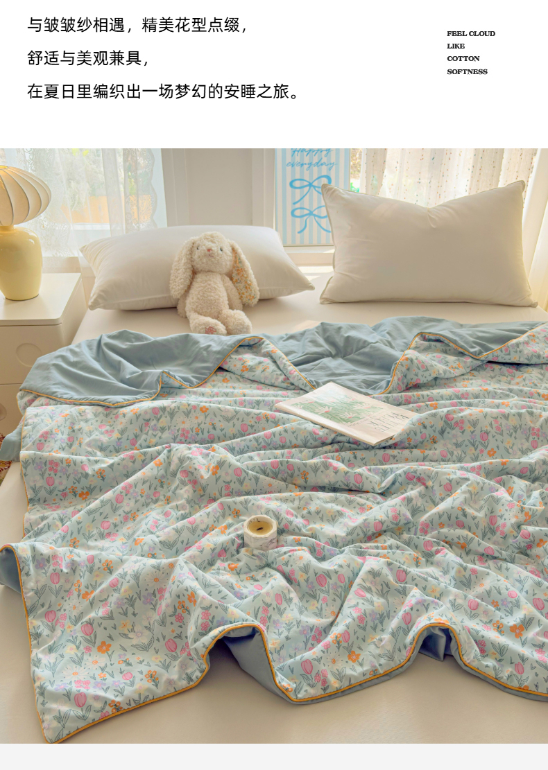 宜梦家居 2026新款水洗棉皱皱纱夏被夏凉被空调被 满园春色