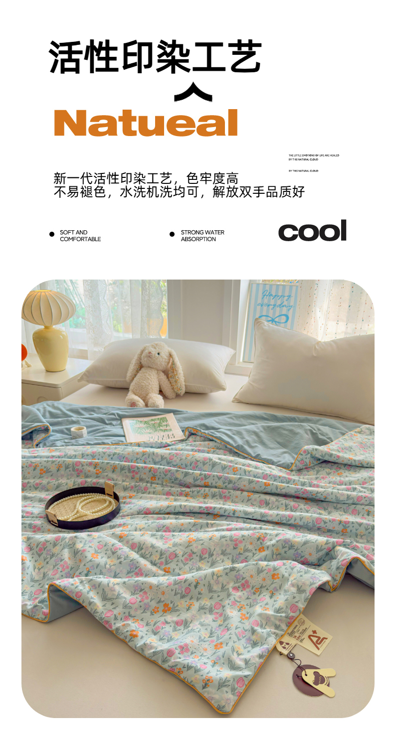商品名称:宜梦家居 2026新款水洗棉皱皱纱夏被夏凉被空调被 满园春色