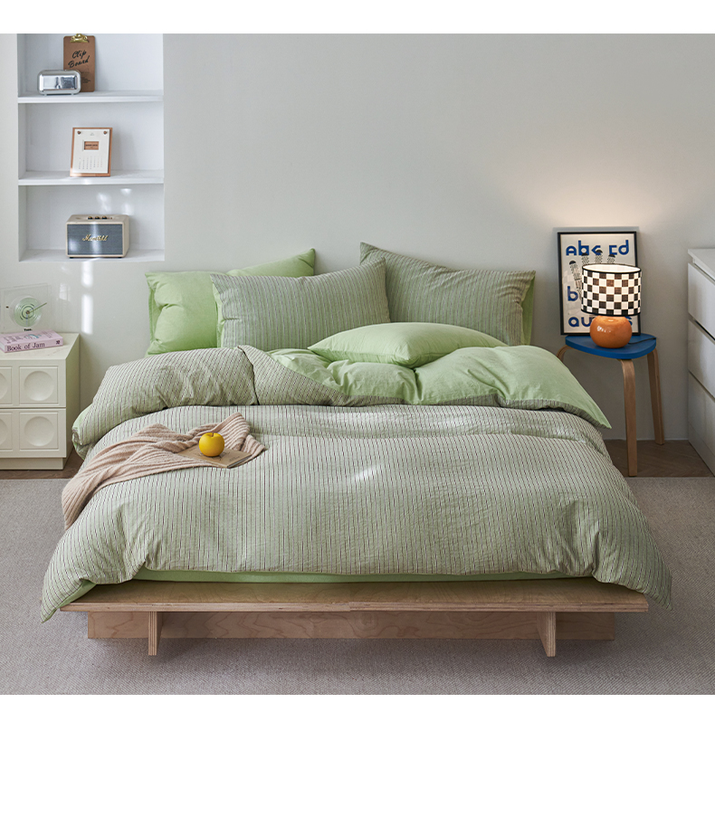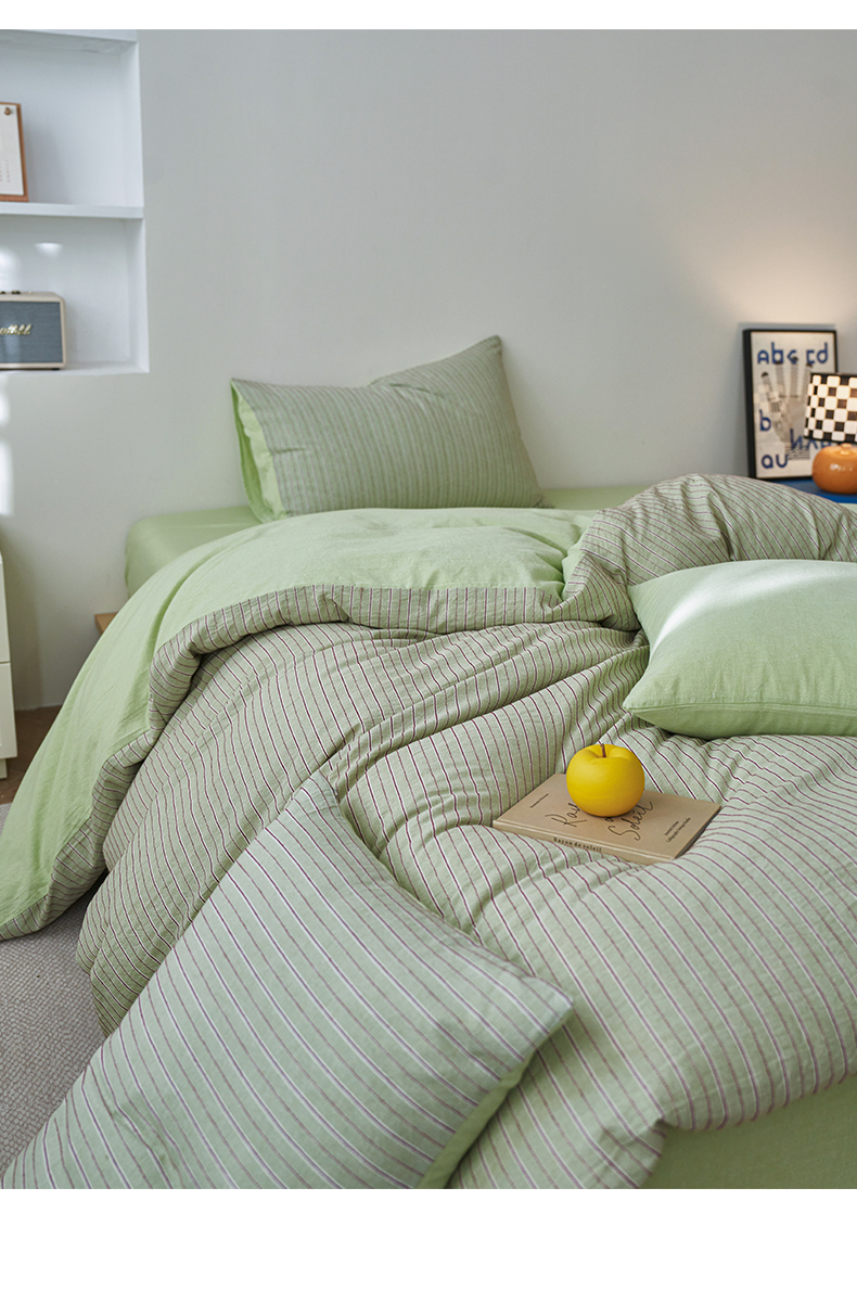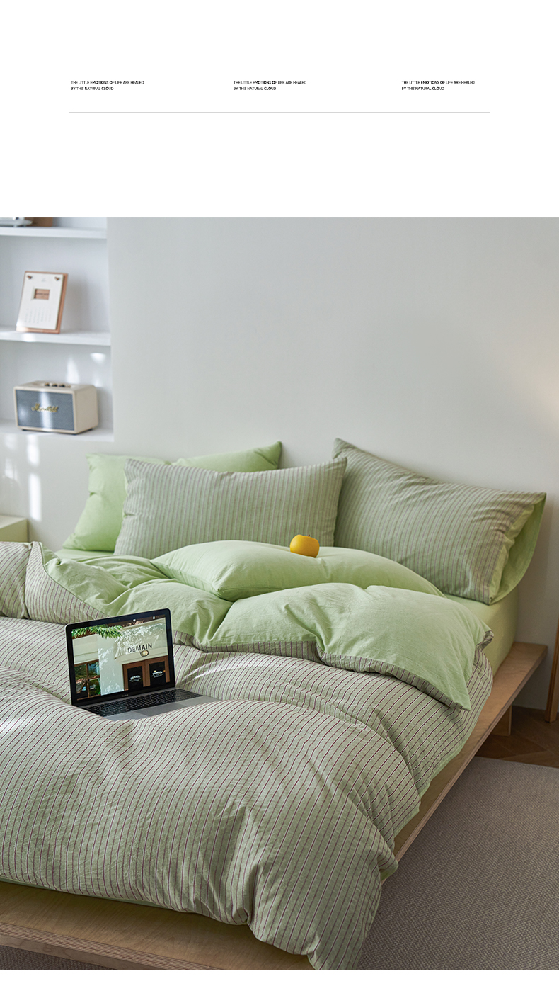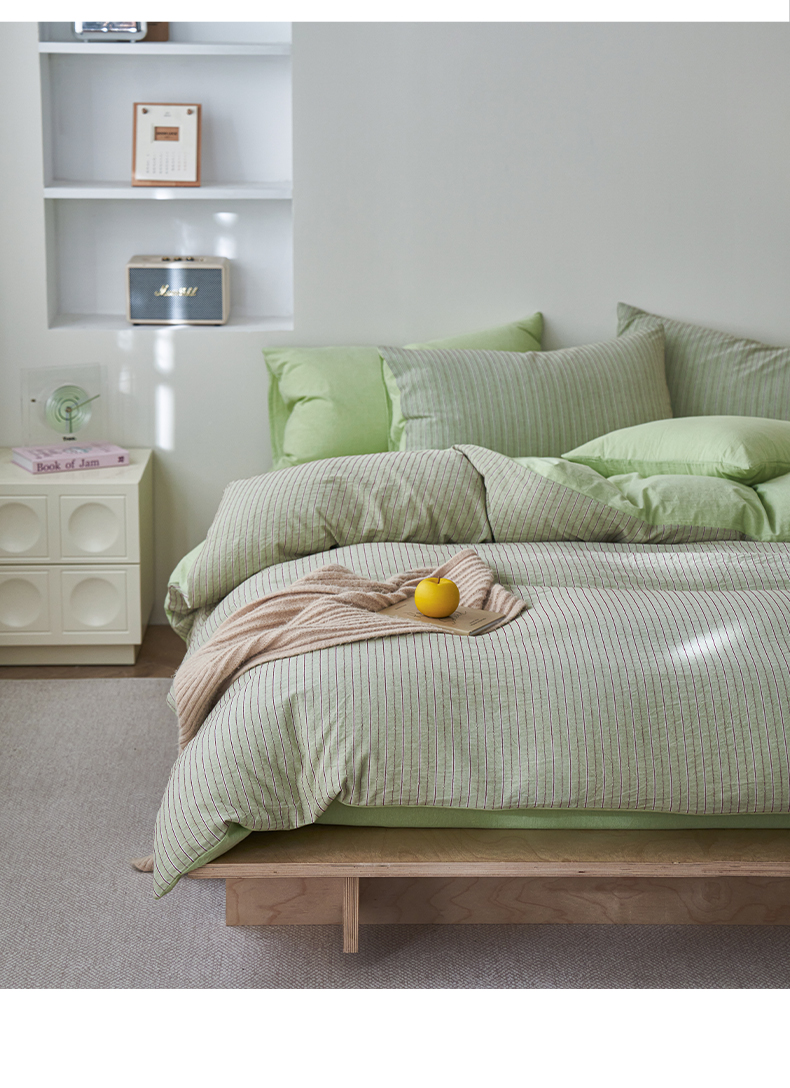 当前位置: 91家纺网 > 商品网购 > 床品套件 > 四件套 > 全棉普通四件套 > 如一 2026新款色织小提花条纹全棉纯棉水洗棉四件套 禾风-绿