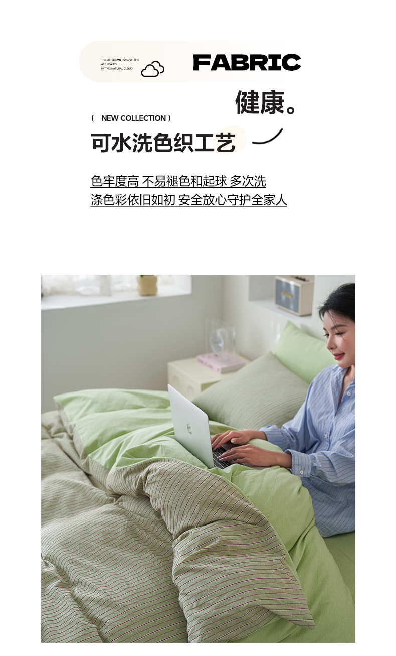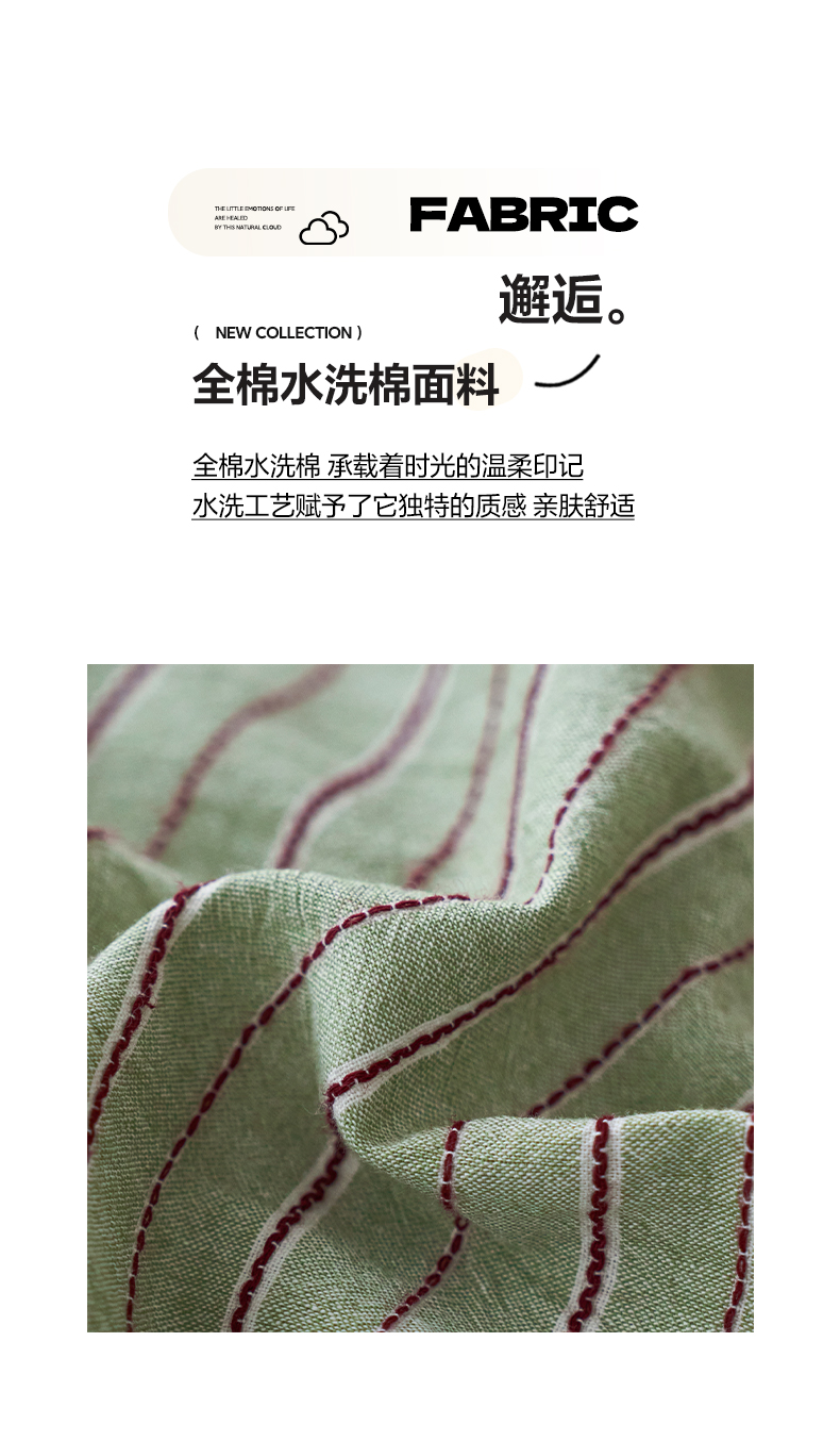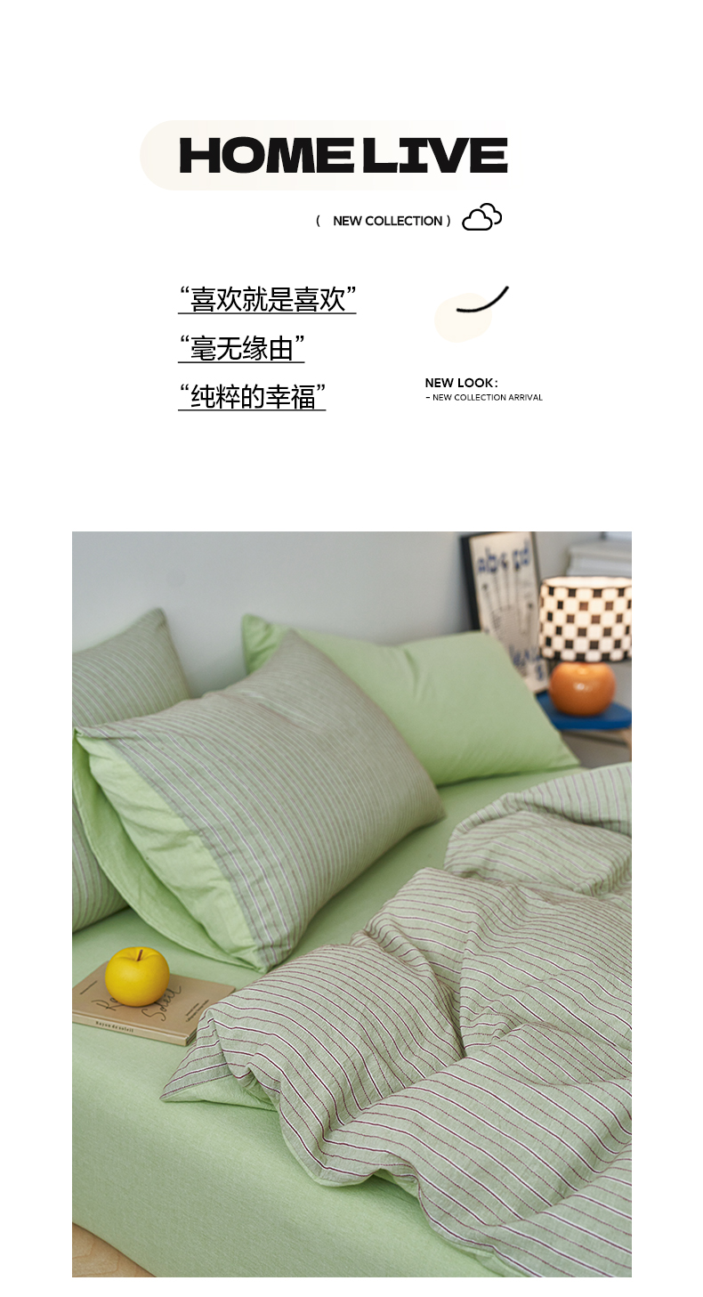 当前位置: 91家纺网 > 商品网购 > 床品套件 > 四件套 > 全棉普通四件套 > 如一 2026新款色织小提花条纹全棉纯棉水洗棉四件套 禾风-绿