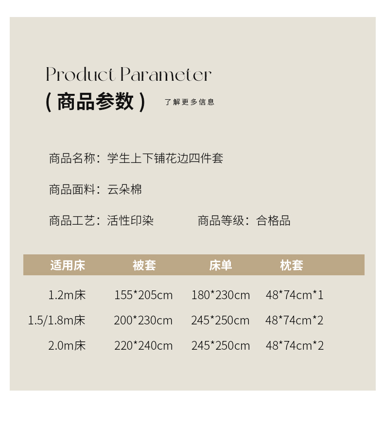 【床笠款】1.8四件套-被套200x230 | ¥75.00 |