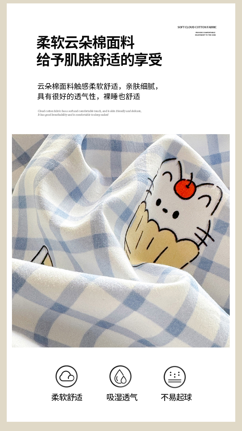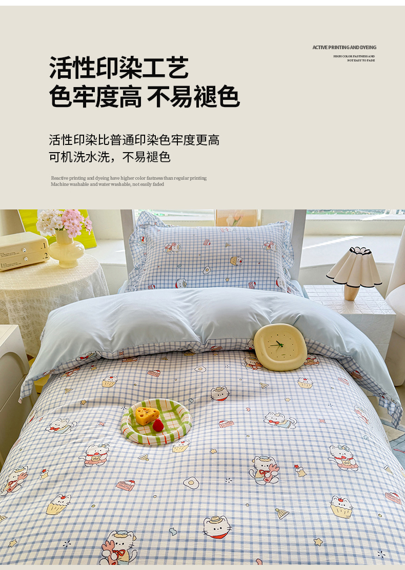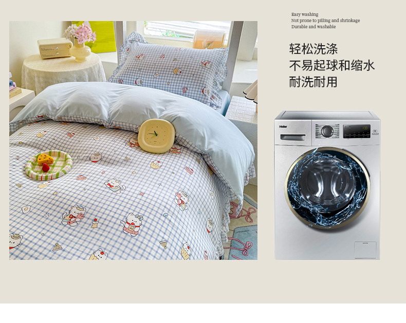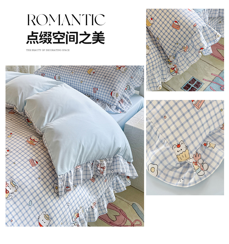 当前位置: 91家纺网 > 商品网购 > 床品套件 > 四件套 > 水洗棉四件套 > 经年 2026新款学生季上下铺韩版花边水洗云朵棉学生宿舍三件套四件套 蓝格小猫