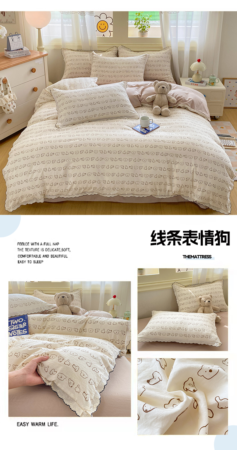 (总)豫见家纺 2026新款古法水洗仿棉云感纱四件套,小鱼心事,爱心格纹,安妮碎花,豹纹咖,彩波波,彩心心,草莓点点,晨露,初夏,梵高映像,乖巧KT-粉,乖巧KT-蓝,赫莲娜,灰条樱桃,吉米兔-灰,吉米兔-紫,浆果,兰枝玉树,梦屿,秘密花园,蜜恋樱桃,木马乐园,南瓜派,千野合,甜心乐园,晚安小星星,夏日初恋,小黄花,小猫钓鱼,小幸福,樱川桃井,知秋