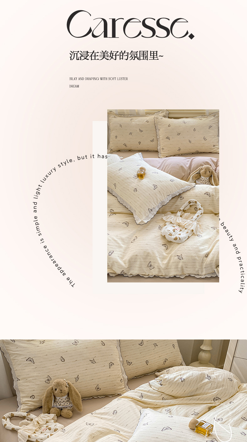 (总)豫见家纺 2026新款古法水洗仿棉云感纱四件套,小鱼心事,爱心格纹,安妮碎花,豹纹咖,彩波波,彩心心,草莓点点,晨露,初夏,梵高映像,乖巧KT-粉,乖巧KT-蓝,赫莲娜,灰条樱桃,吉米兔-灰,吉米兔-紫,浆果,兰枝玉树,梦屿,秘密花园,蜜恋樱桃,木马乐园,南瓜派,千野合,甜心乐园,晚安小星星,夏日初恋,小黄花,小猫钓鱼,小幸福,樱川桃井,知秋