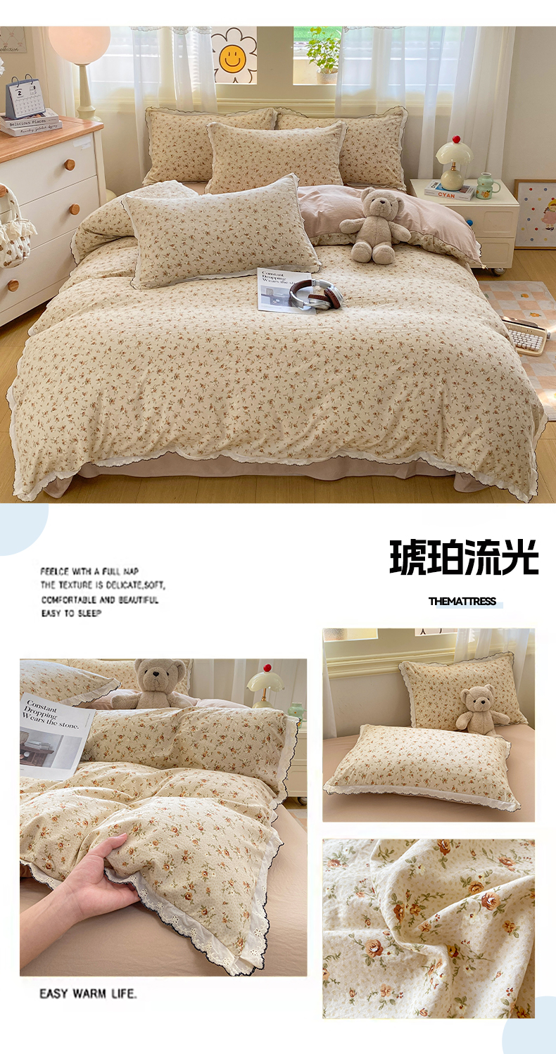 豫见家纺 2026新款A类仿棉云感纱花边四件套 年华