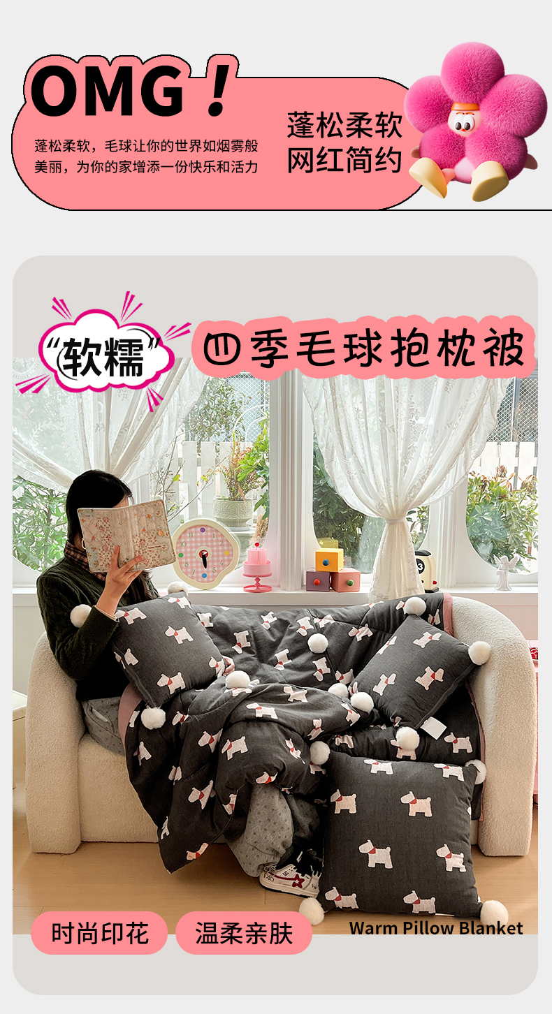 (总)古本家居 2026新款四季水洗毛球系列抱枕被,四季毛球四叶草焦糖,四季毛球小狗黑色,四季毛球小狗奶白,四季毛球四叶草桃粉,四季毛球四叶草冰蓝,四季毛球小兔暖棕,四季毛球四叶草奶咖