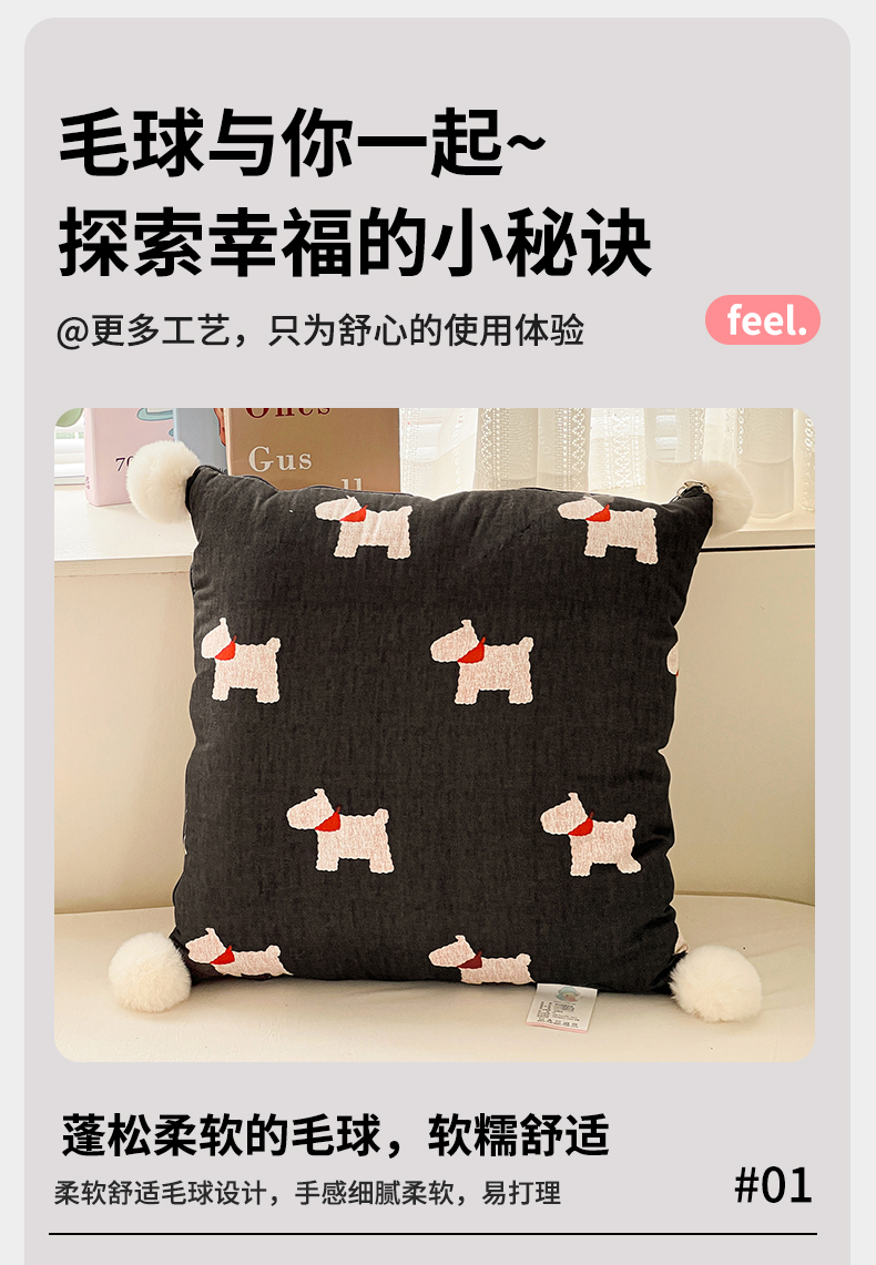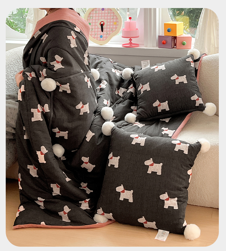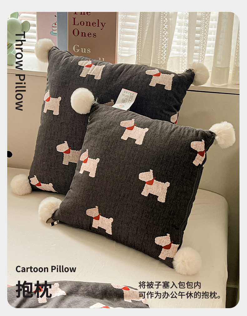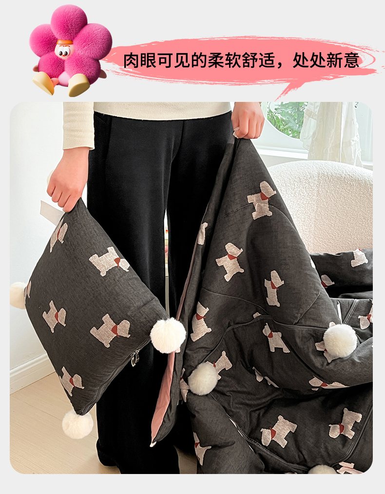 商品名称:古本家居 2026新款四季水洗毛球系列抱枕被 四季毛球小狗黑色