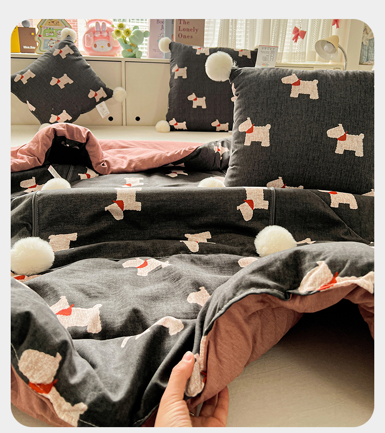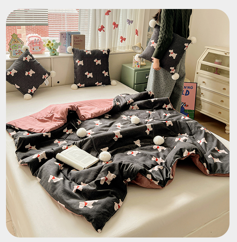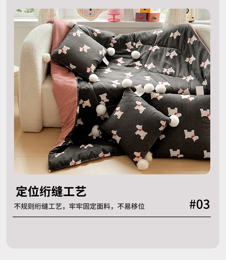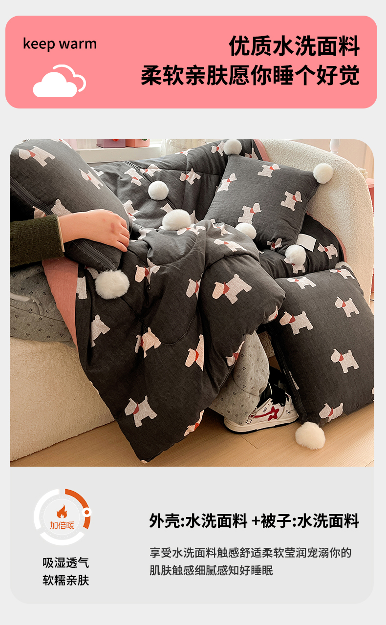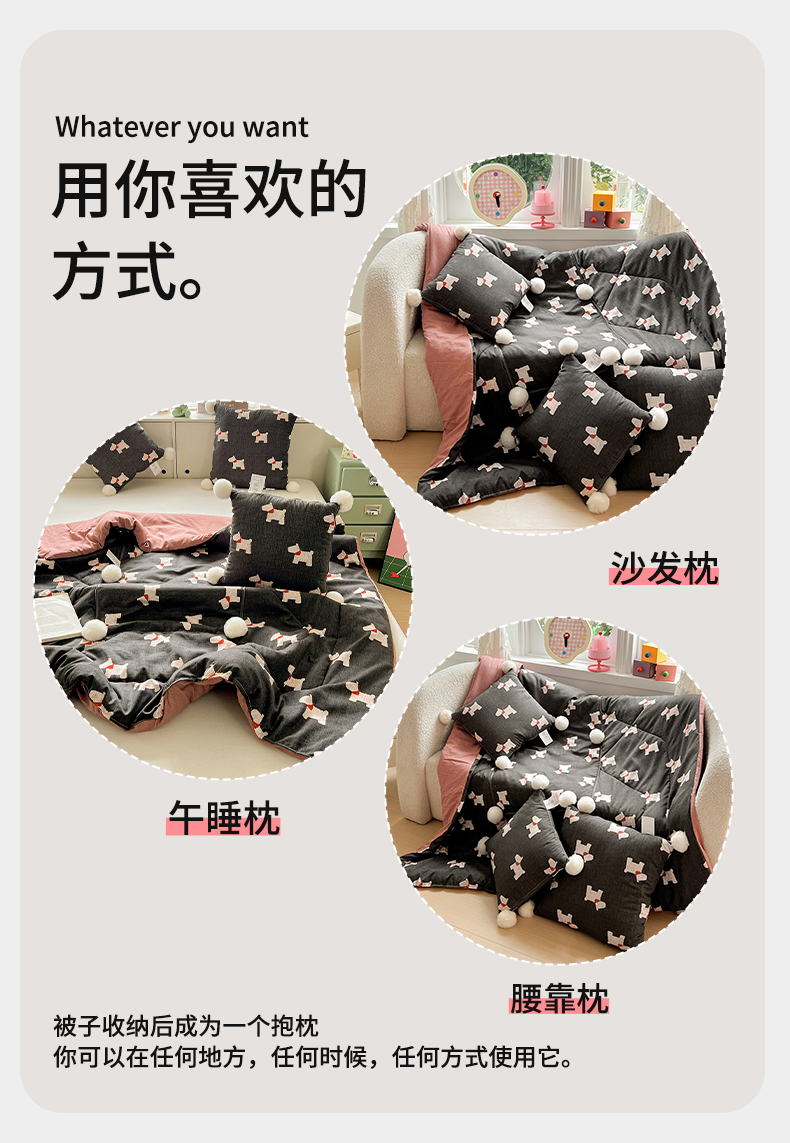 商品名称:古本家居 2026新款四季水洗毛球系列抱枕被 四季毛球小狗黑色