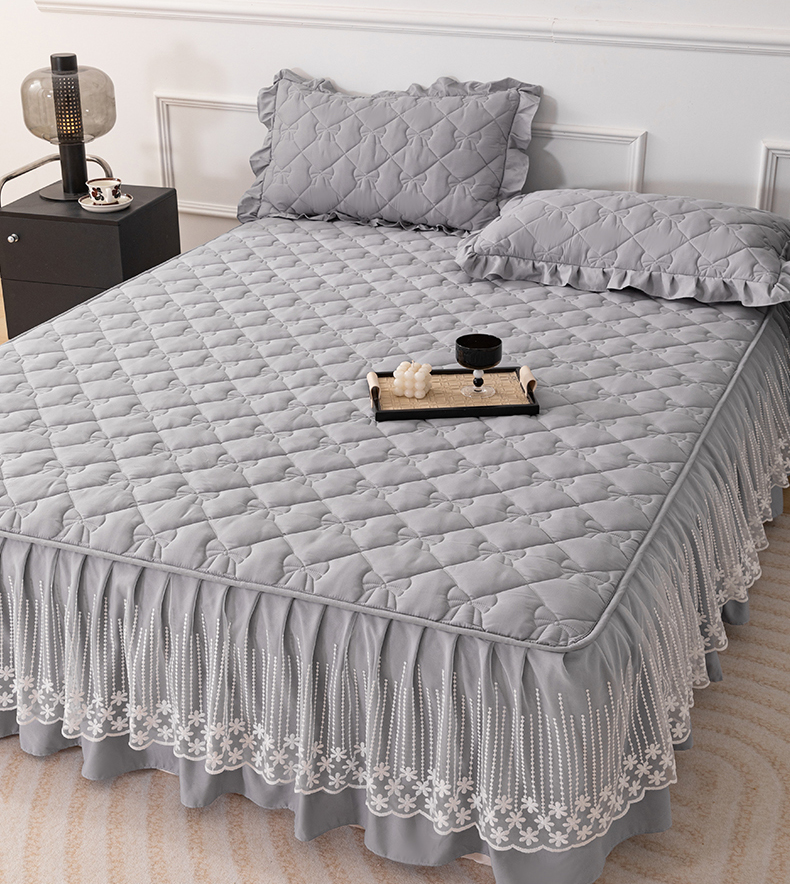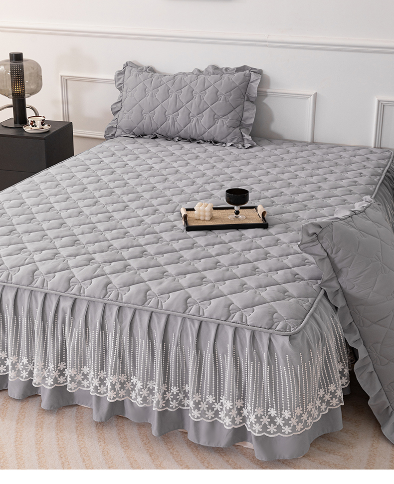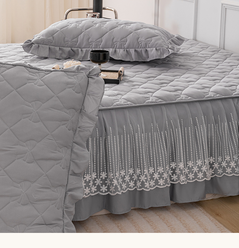 乐蔻家纺 2026春夏新款A类原棉大豆夹棉床裙床笠四件套床笠单件-蝴蝶结 蝴蝶结-高级灰