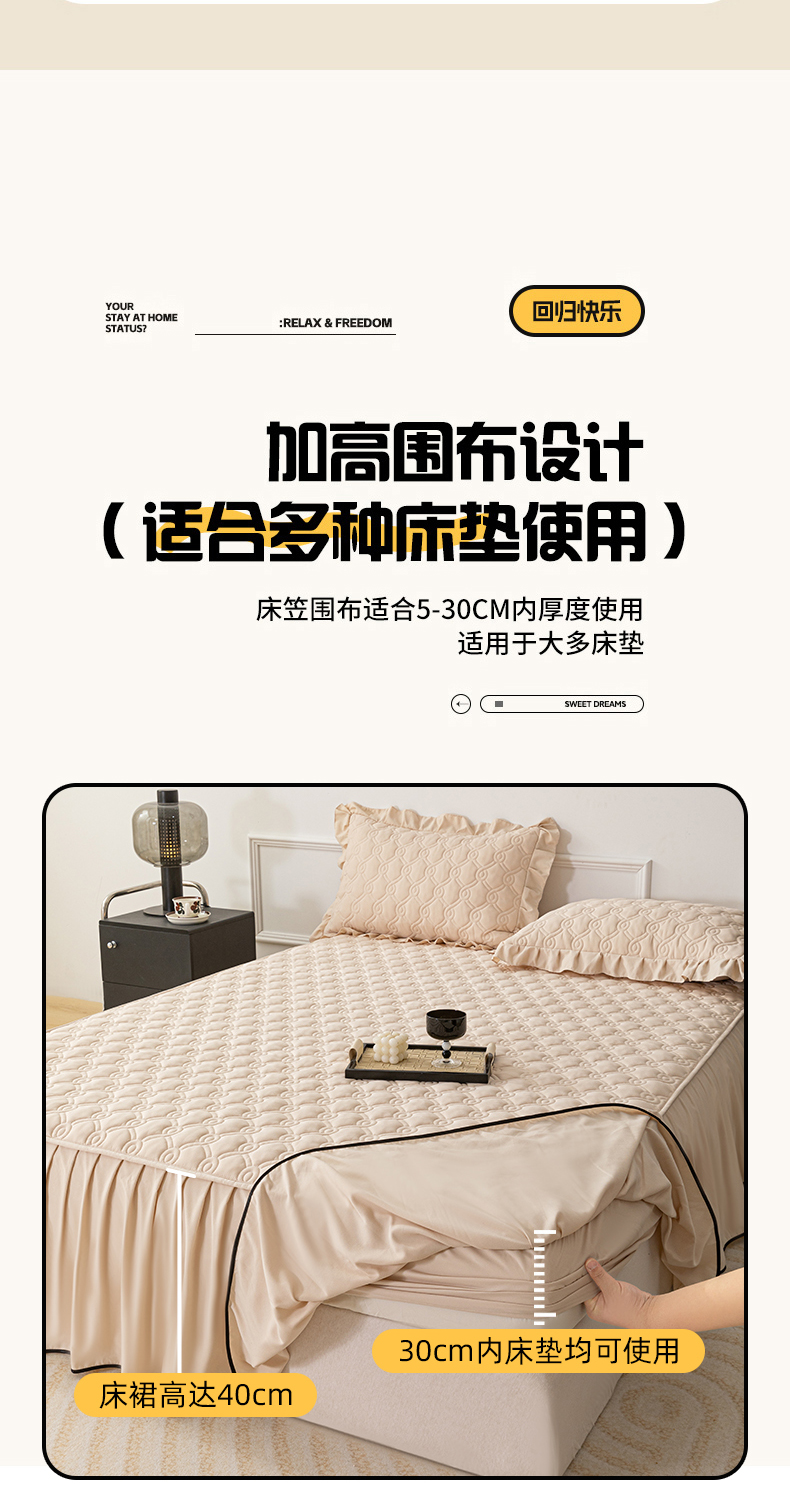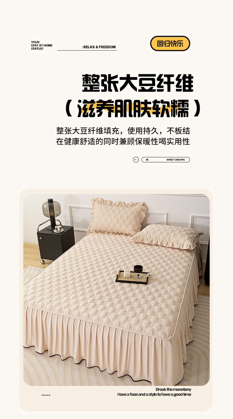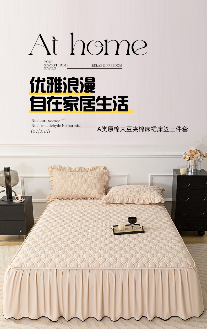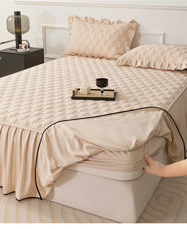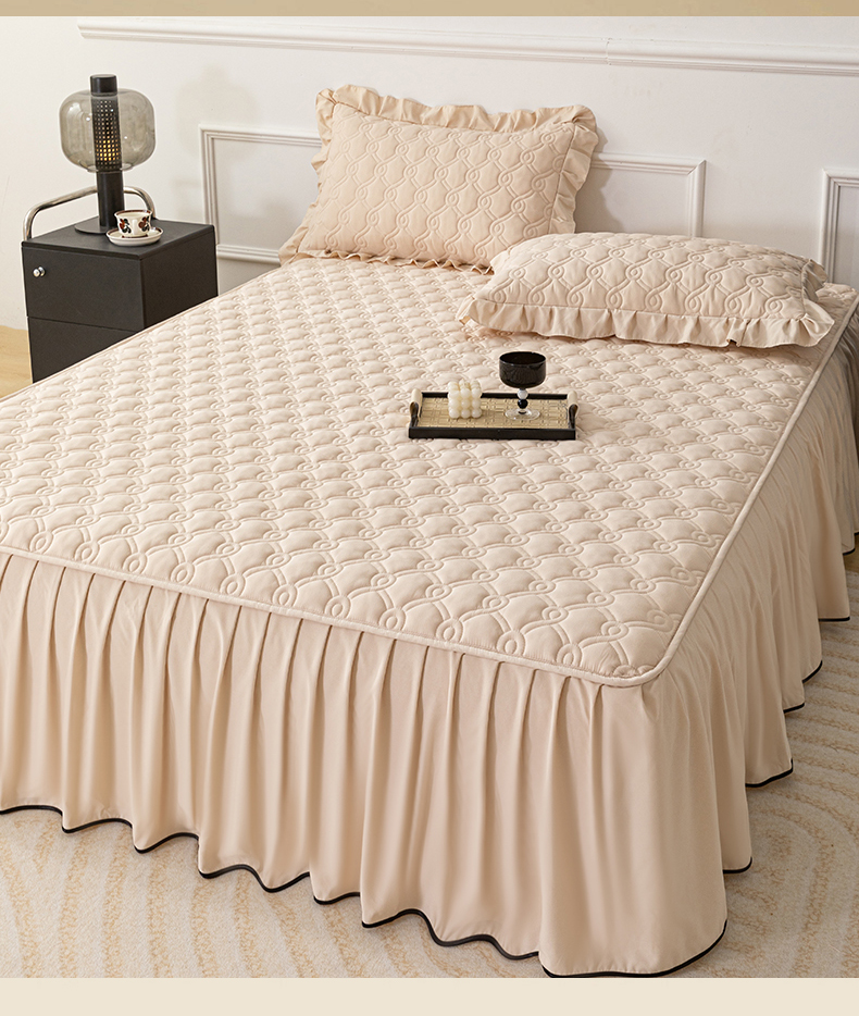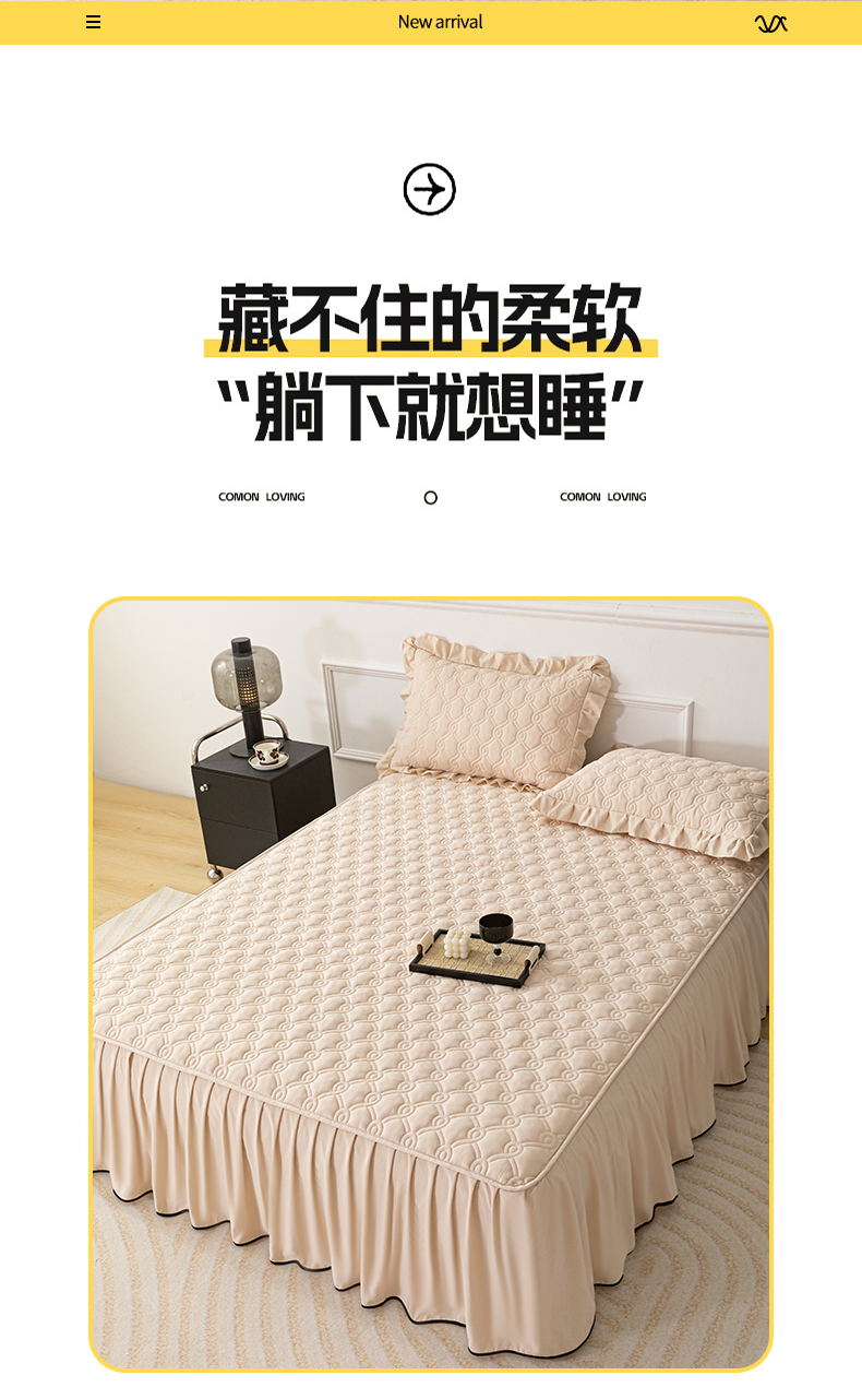 • 91家纺网 家纺一手货源 找家纺 乐蔻家纺 2026春夏新款新款A类原棉大豆夹棉床裙床笠四件套床笠单件-水仙花 水仙花-优雅驼