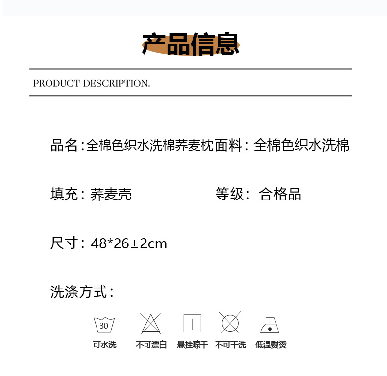 商品名称:(总)仁宇枕业 2026新款新品全棉简约款砂洗面包枕头水洗棉全荞麦颈椎枕头枕芯
