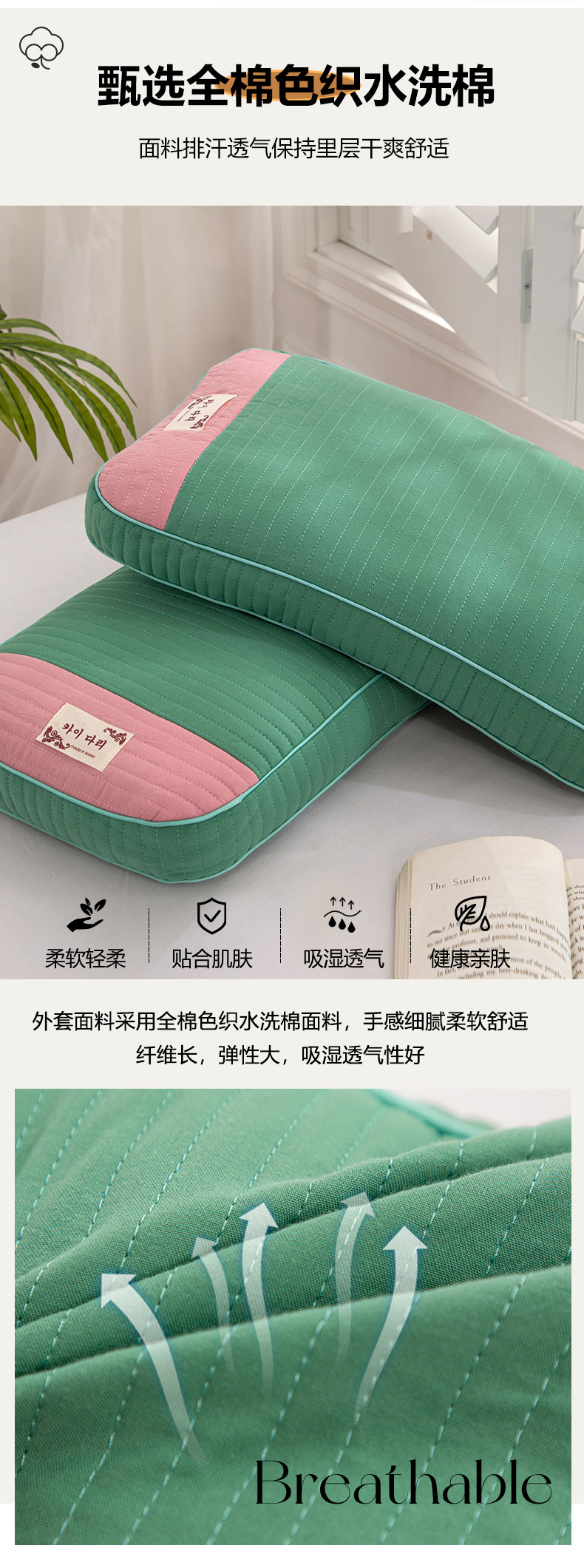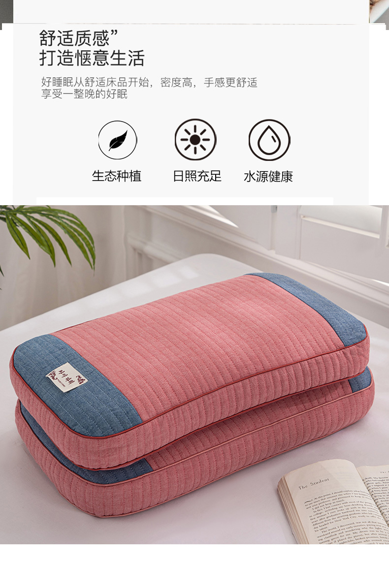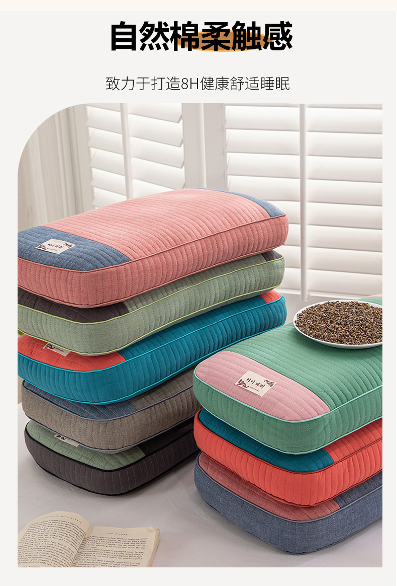(总)仁宇枕业 2026新款全棉纯棉极简系列水洗棉全荞麦枕头枕芯,极简-琥珀蓝,极简-藕灰,极简-青草绿,极简-海棠红