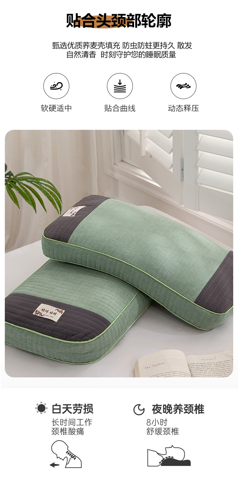 (总)仁宇枕业 2026新款新品全棉简约款砂洗面包枕头水洗棉全荞麦颈椎枕头枕芯