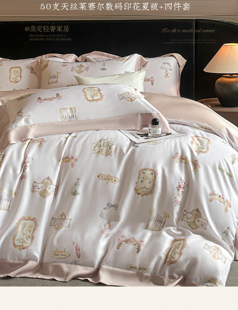 当前位置: 91家纺网 > 商品网购 > 床品套件 > 四件套 > 莱赛尔四件套 > 蓝米卡夫 2026夏季新款50S天丝数码印花夏被夏凉被空调被四件套 洛丽塔-粉