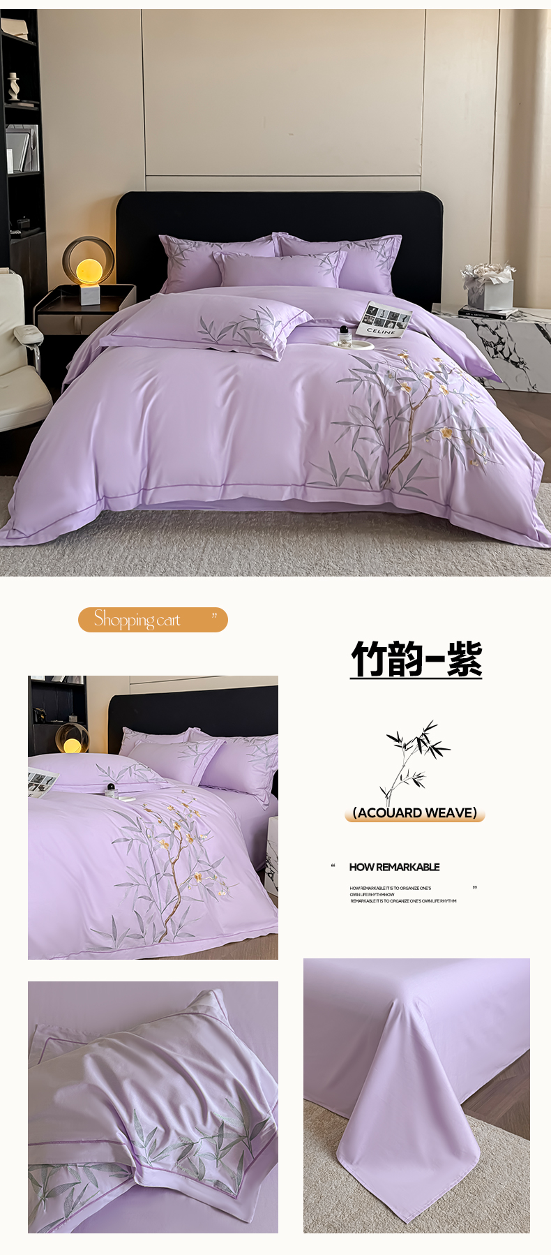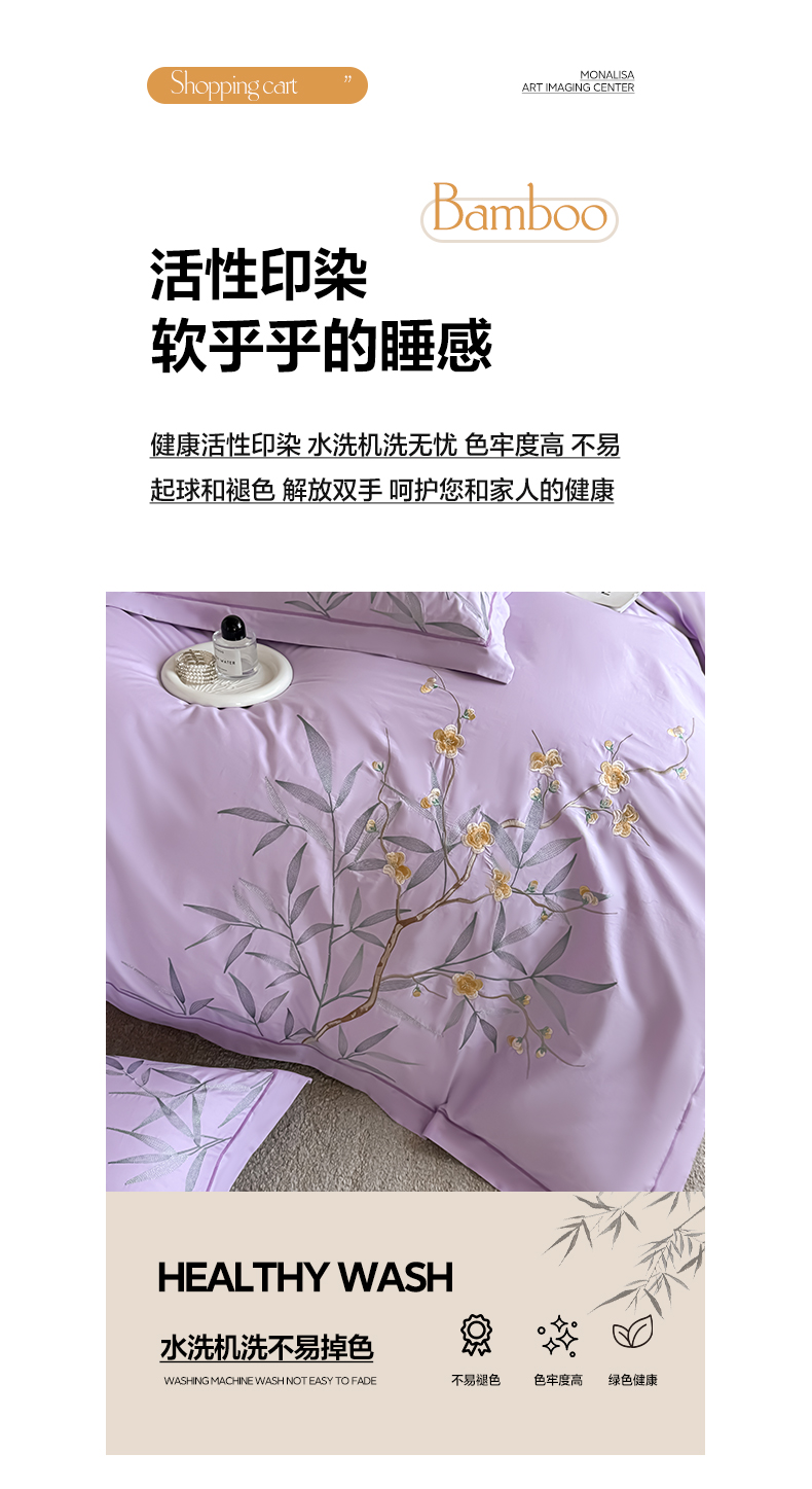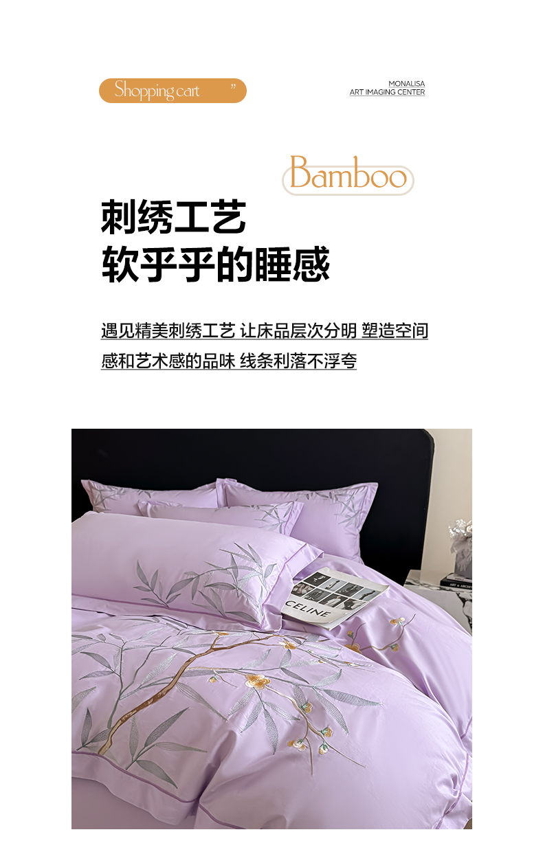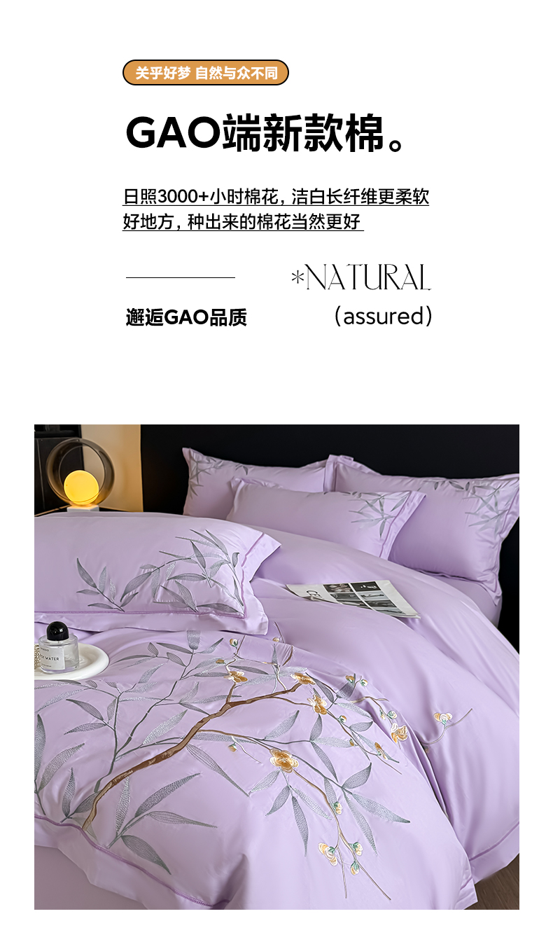 商品名称:湘雪家居 2026新款纯棉全棉长绒棉刺绣绣花高端礼盒四件套-竹韵系列 竹韵-熏韵紫