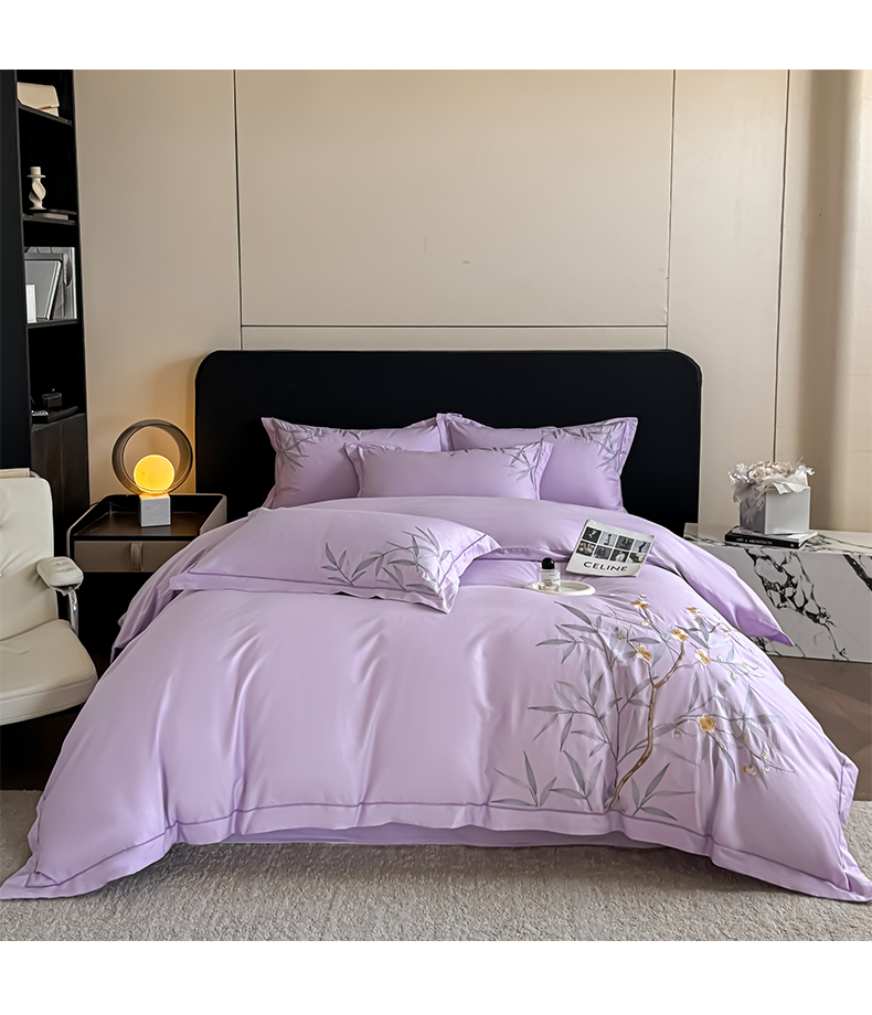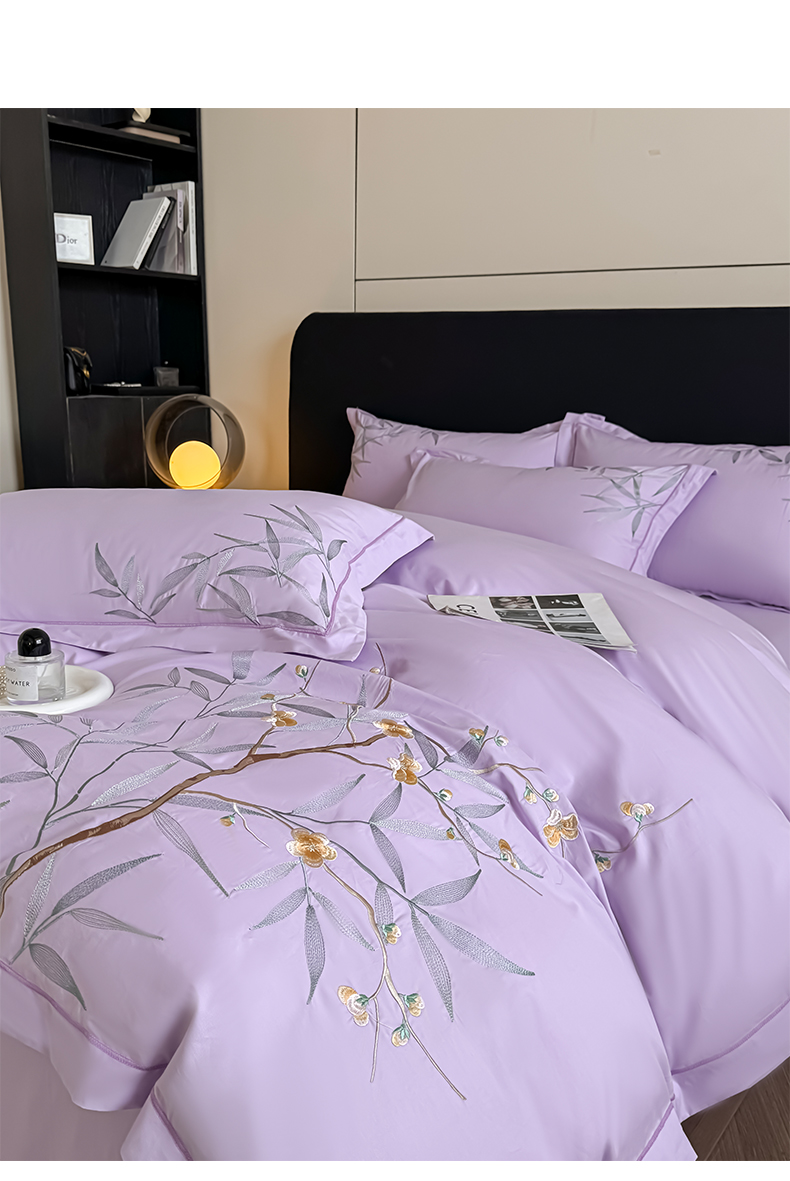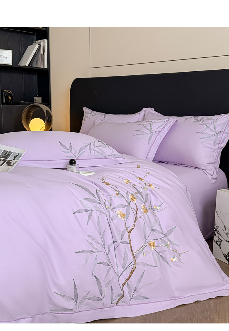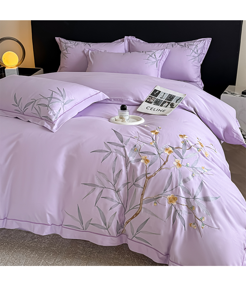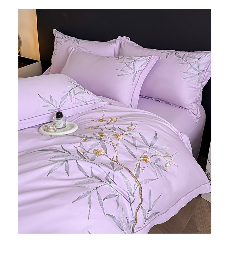 湘雪家居 2026新款纯棉全棉长绒棉刺绣绣花高端礼盒四件套-竹韵系列 竹韵-熏韵紫