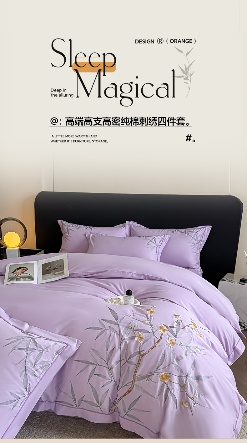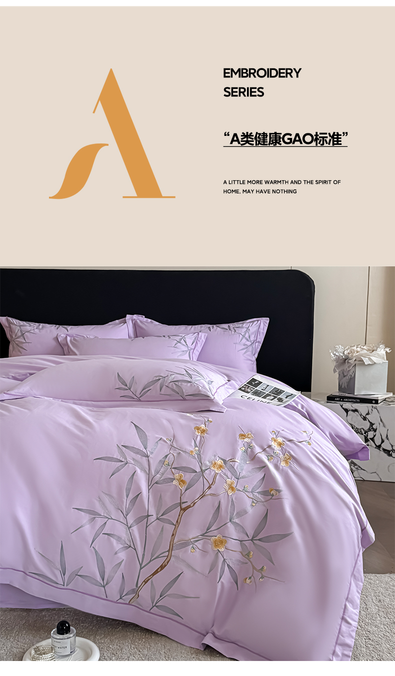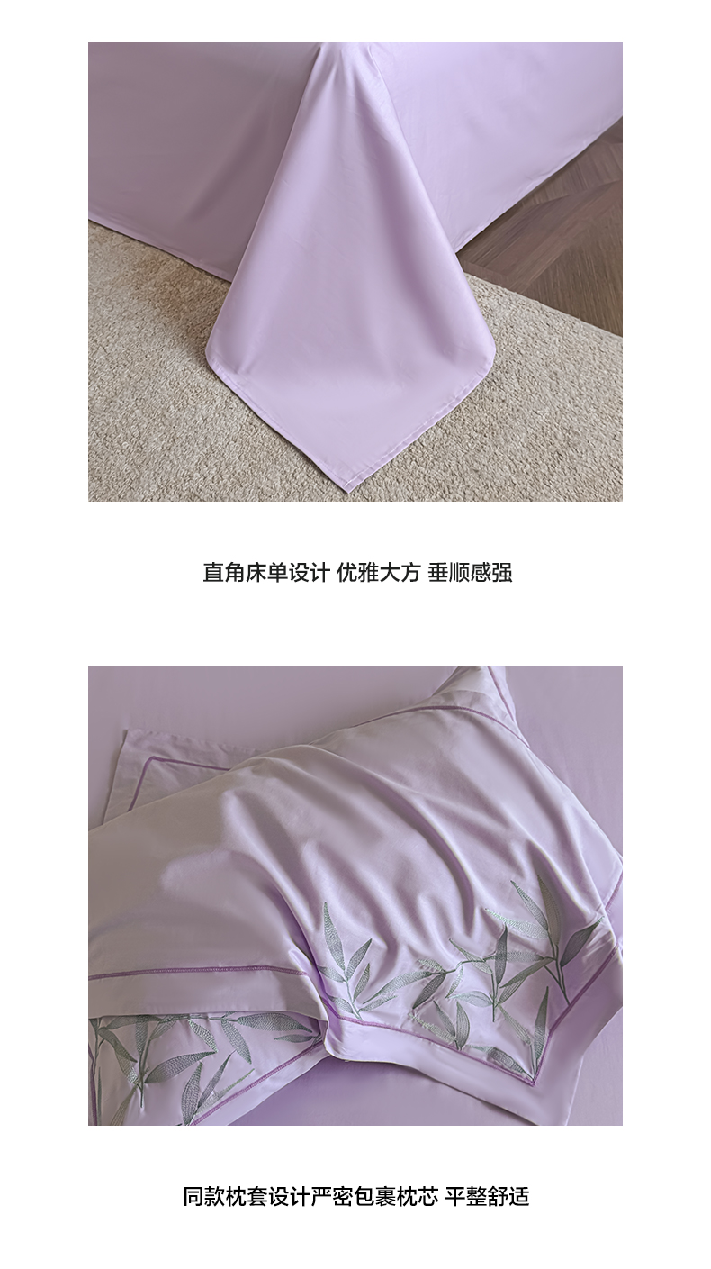 湘雪家居 2026新款纯棉全棉长绒棉刺绣绣花高端礼盒四件套-竹韵系列 竹韵-熏韵紫
