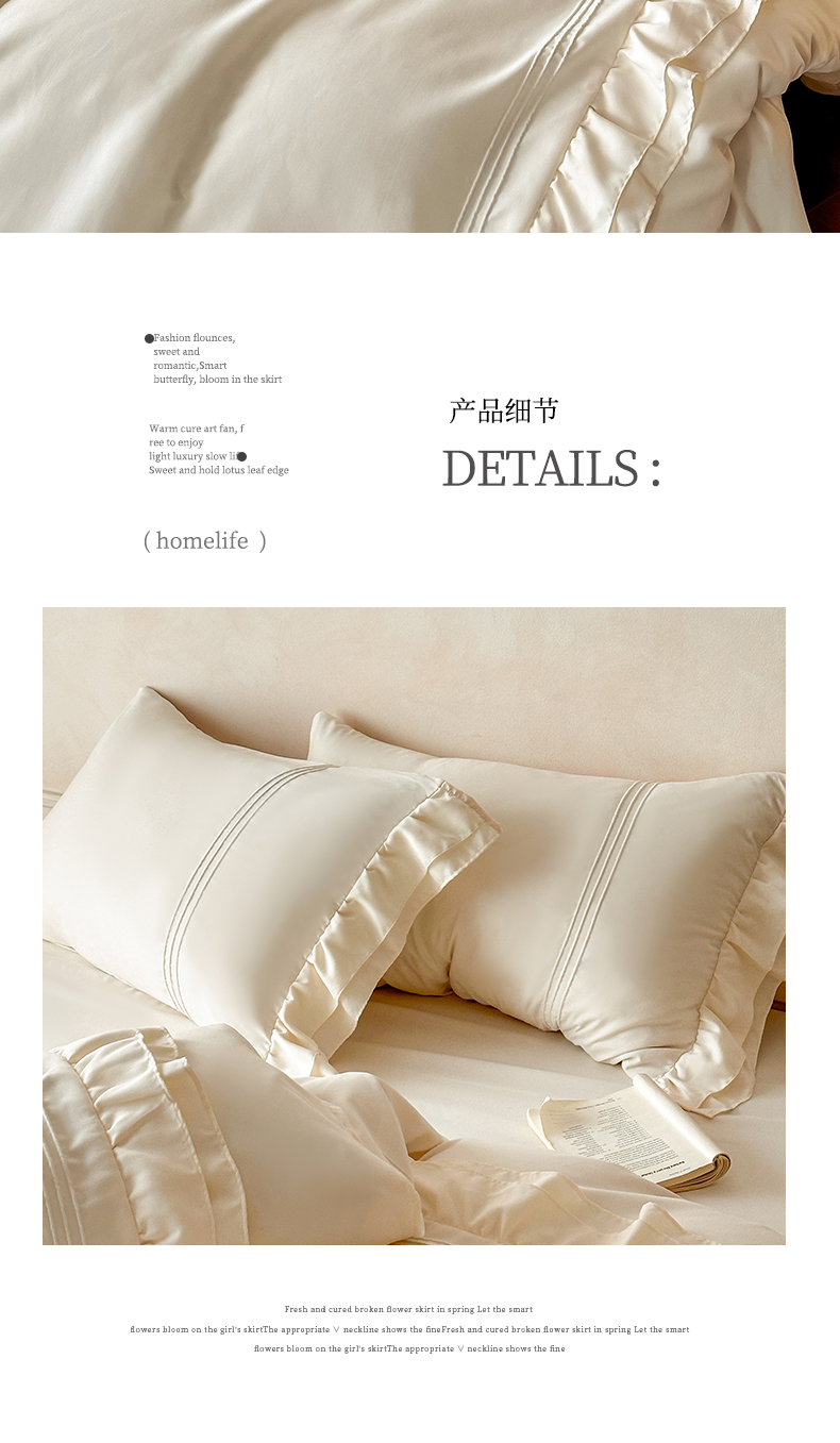当前位置: 91家纺网 > 商品网购 > 床品套件 > 四件套 > (总)苏源家居 2026新款亲肤棉磨毛双层荷叶边埋绳公主风四件套-洛莉