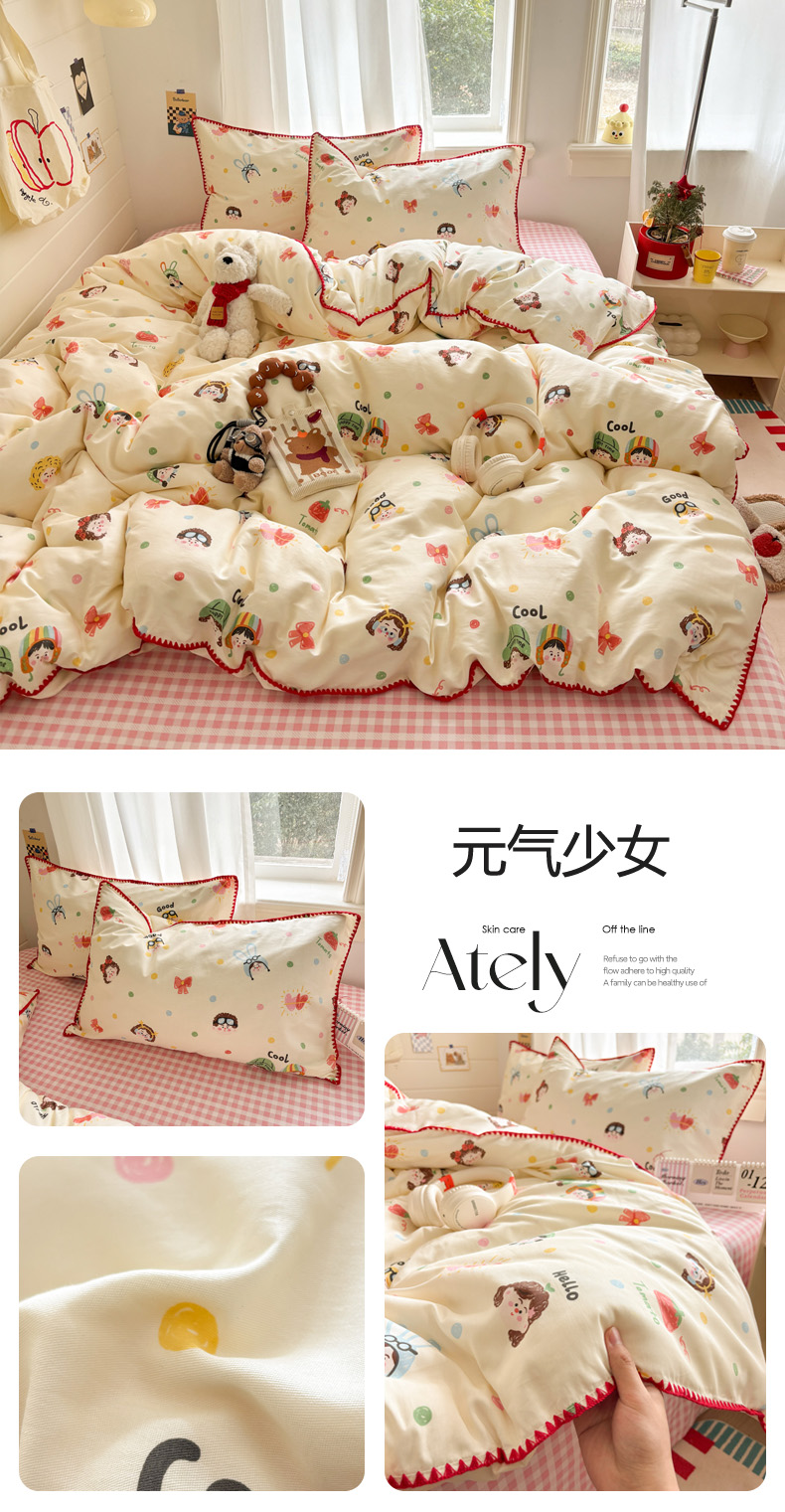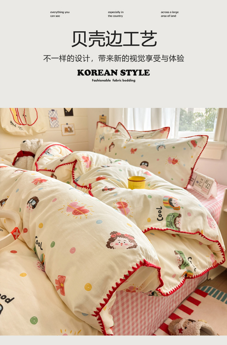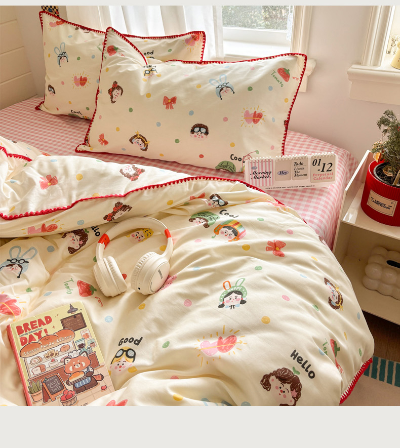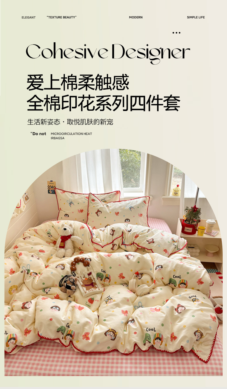 当前位置: 91家纺网 > 商品网购 > 床品套件 > 四件套 > 全棉普通四件套 > 慕尚家纺 2026春夏新款全棉纯棉印花三角针四件套 元气少女