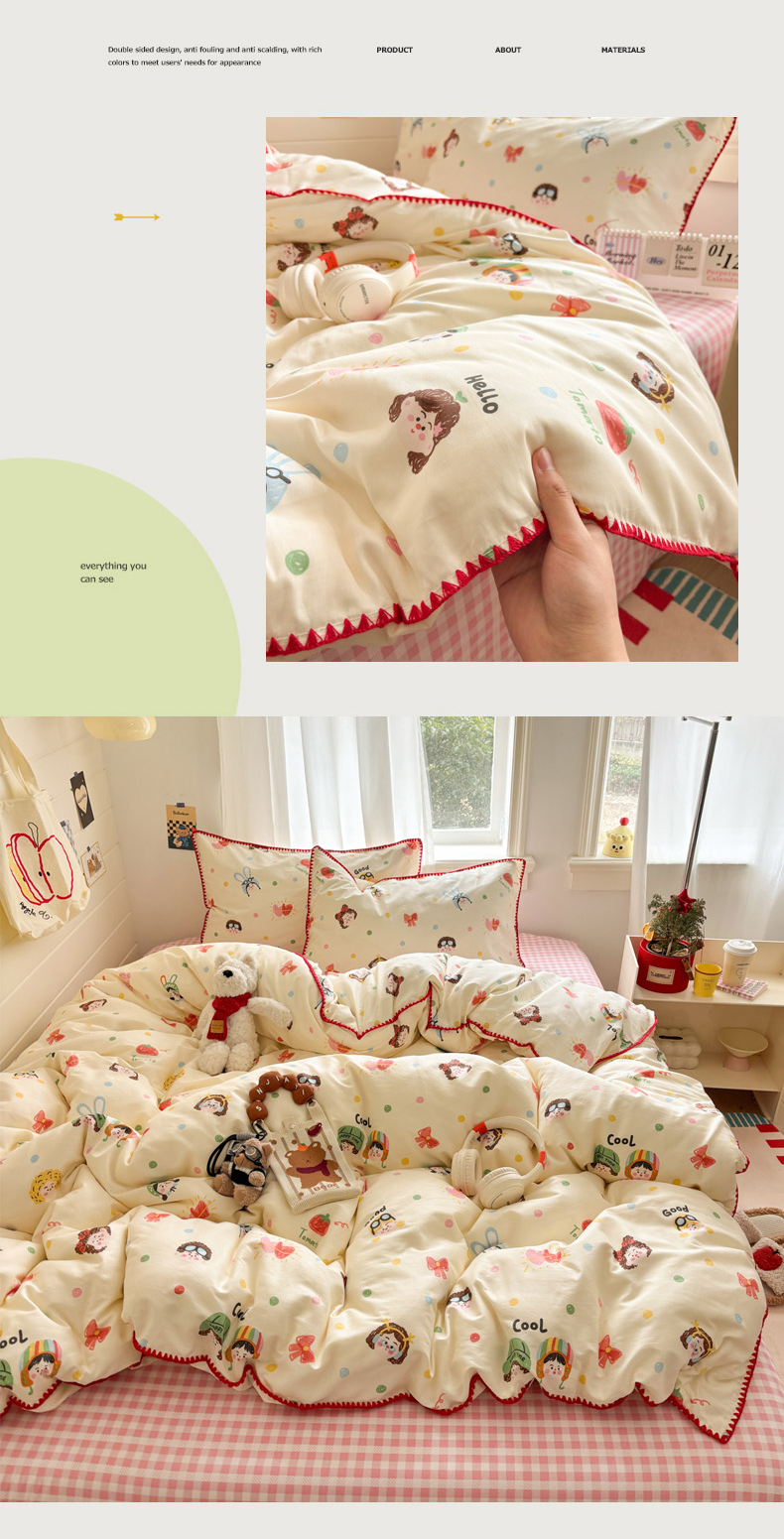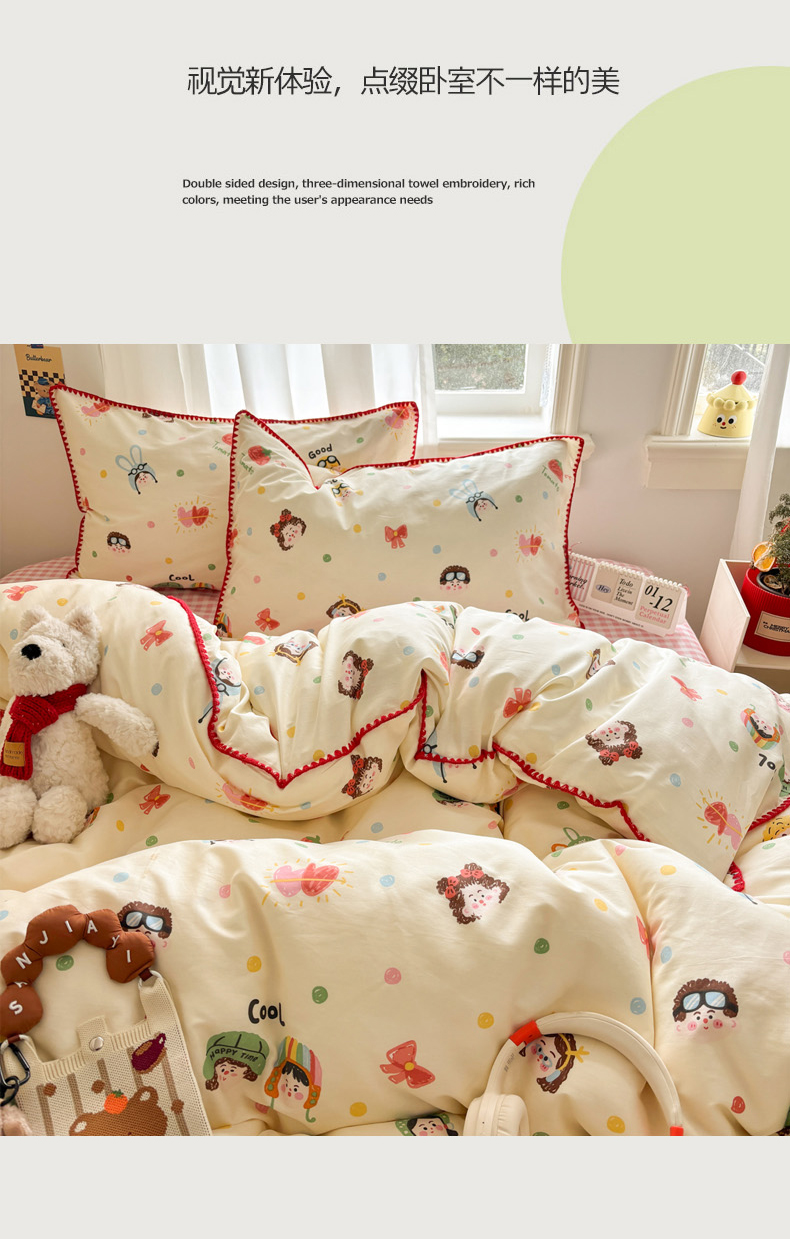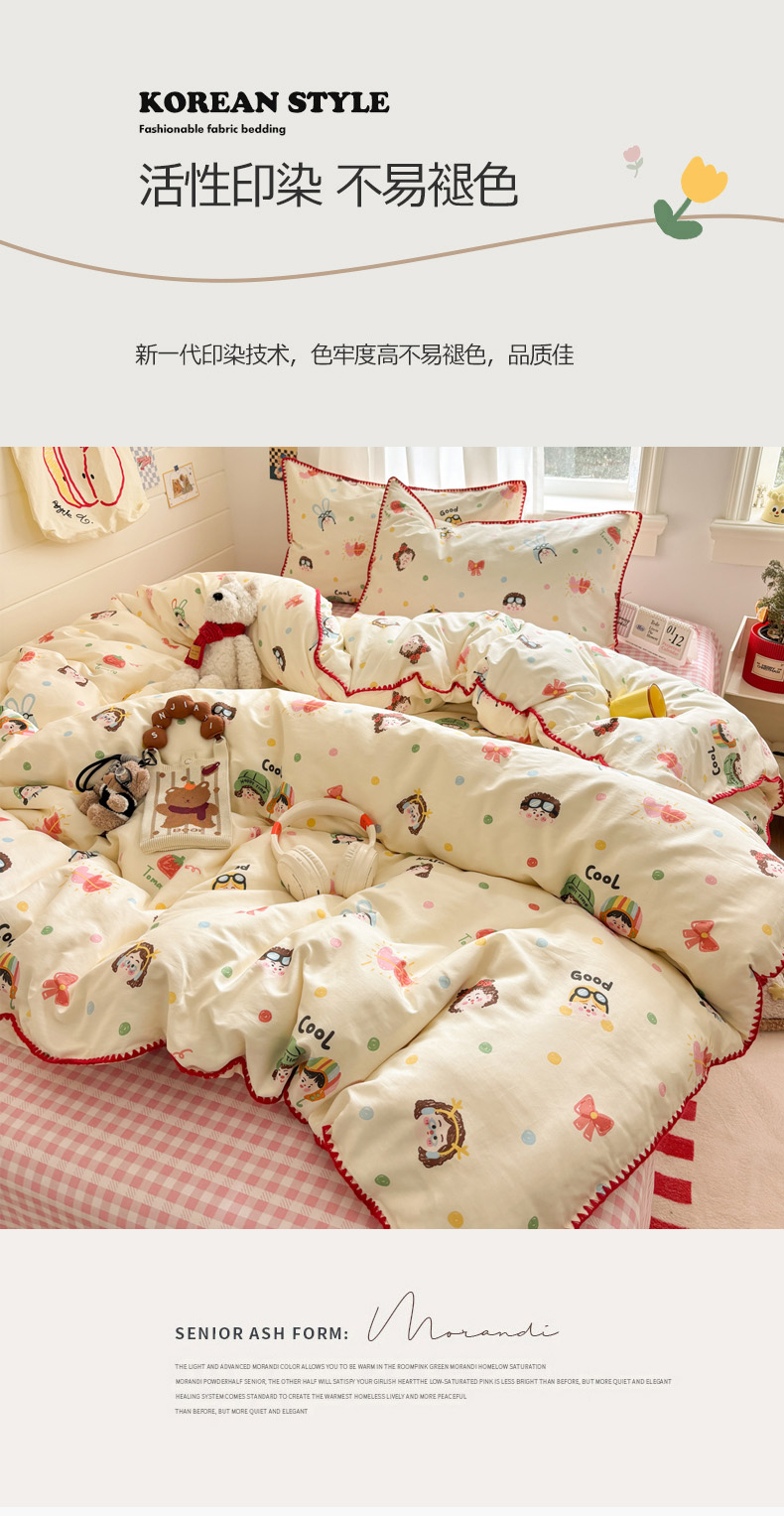 当前位置: 91家纺网 > 商品网购 > 床品套件 > 四件套 > 全棉普通四件套 > 慕尚家纺 2026春夏新款全棉纯棉印花三角针四件套 元气少女