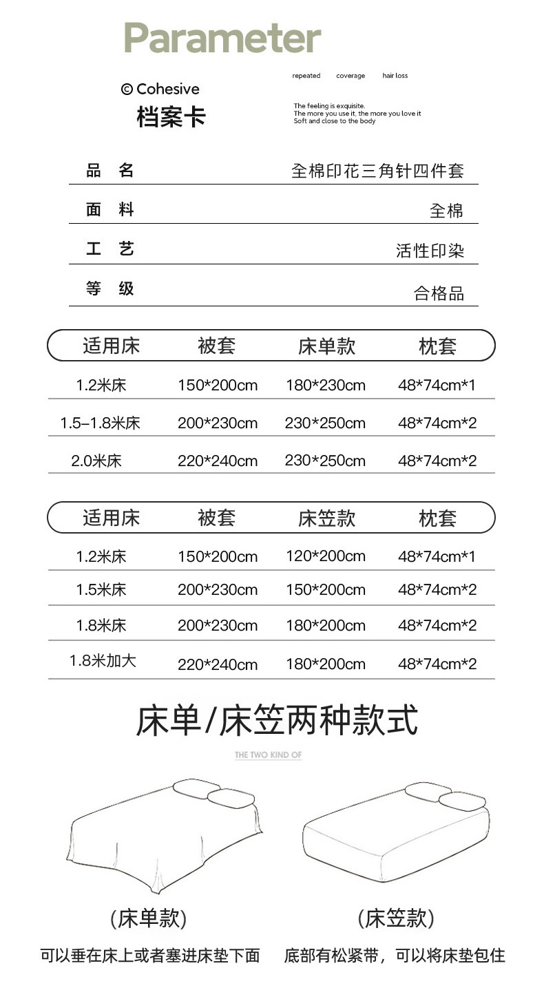 【床笠款】1.2三件套-被套150x200 | ¥89.00 |