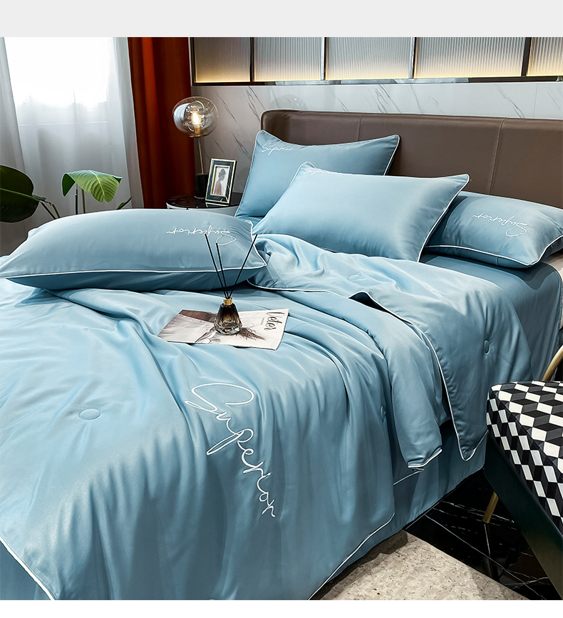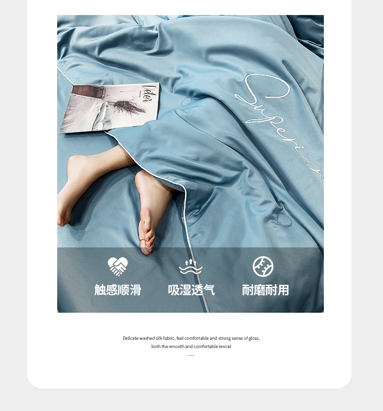• 91家纺网 家纺一手货源 找家纺 吾诺家居 2026新款字母刺绣水洗天丝夏被夏凉被空调被四件套-字母 字母石兰