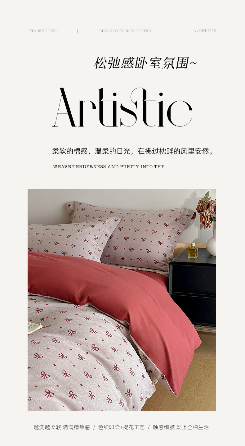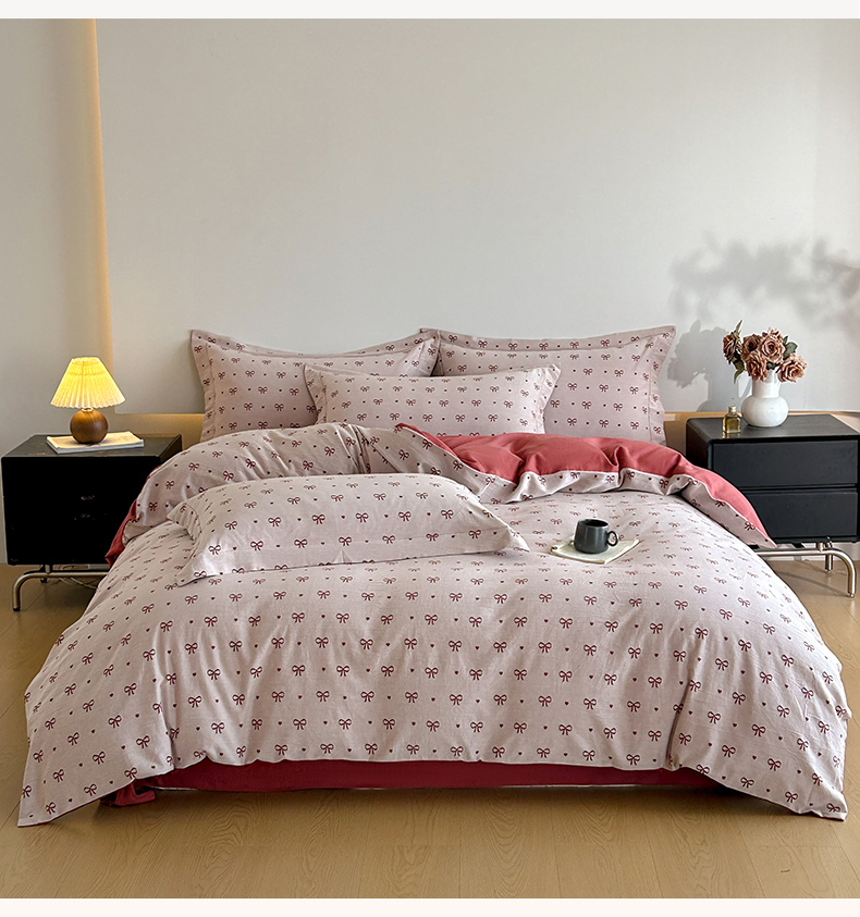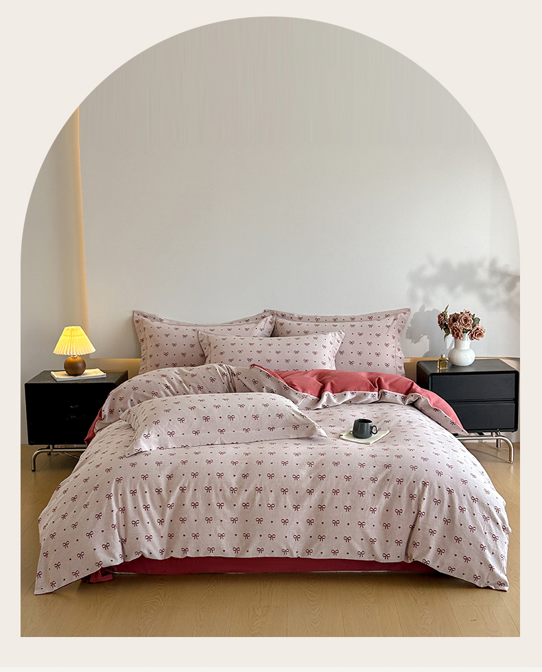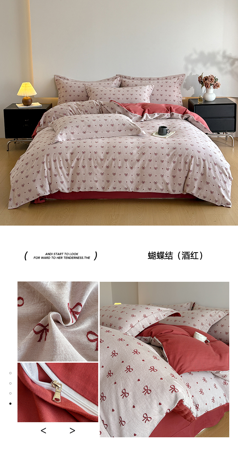 当前位置: 91家纺网 > 商品网购 > 床品套件 > 四件套 > 全棉普通四件套 > 禾时 2026新款全棉纯棉色织提花四件套 蝴蝶结(酒红)