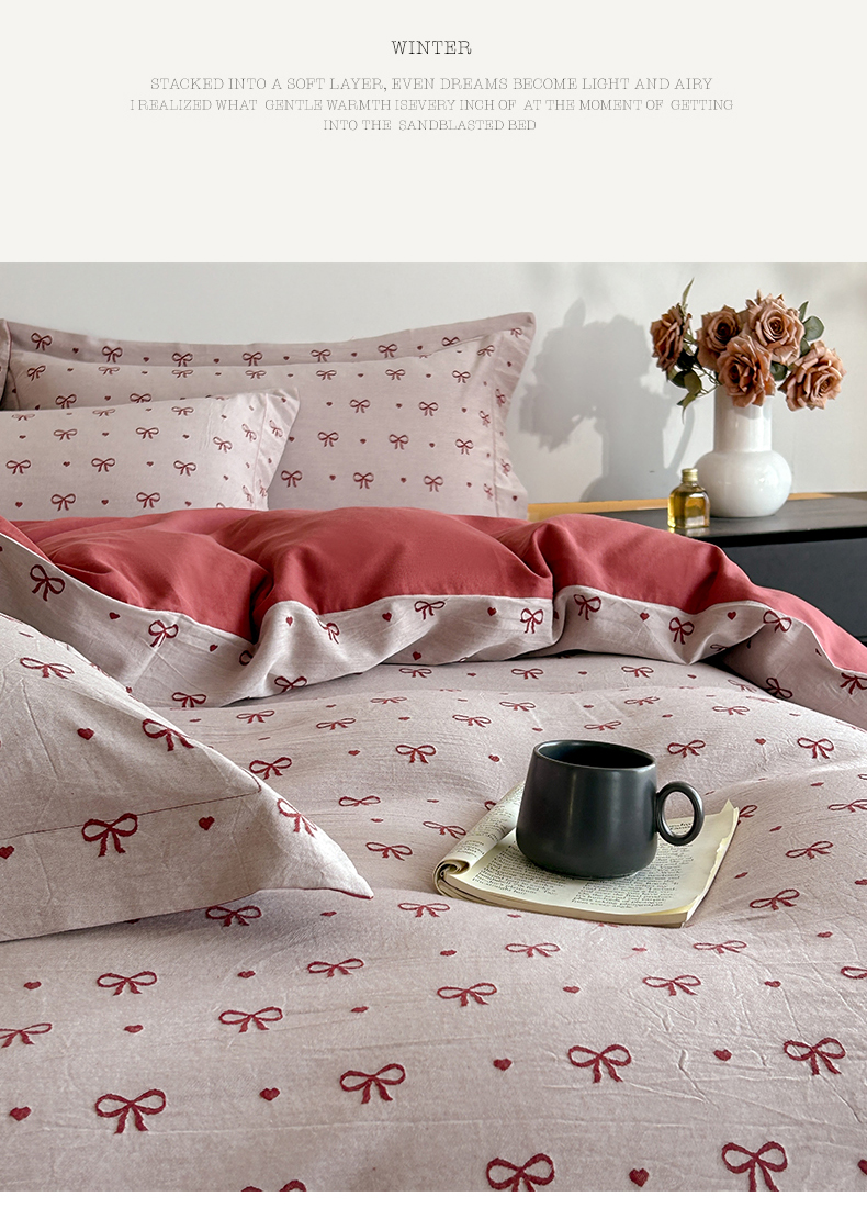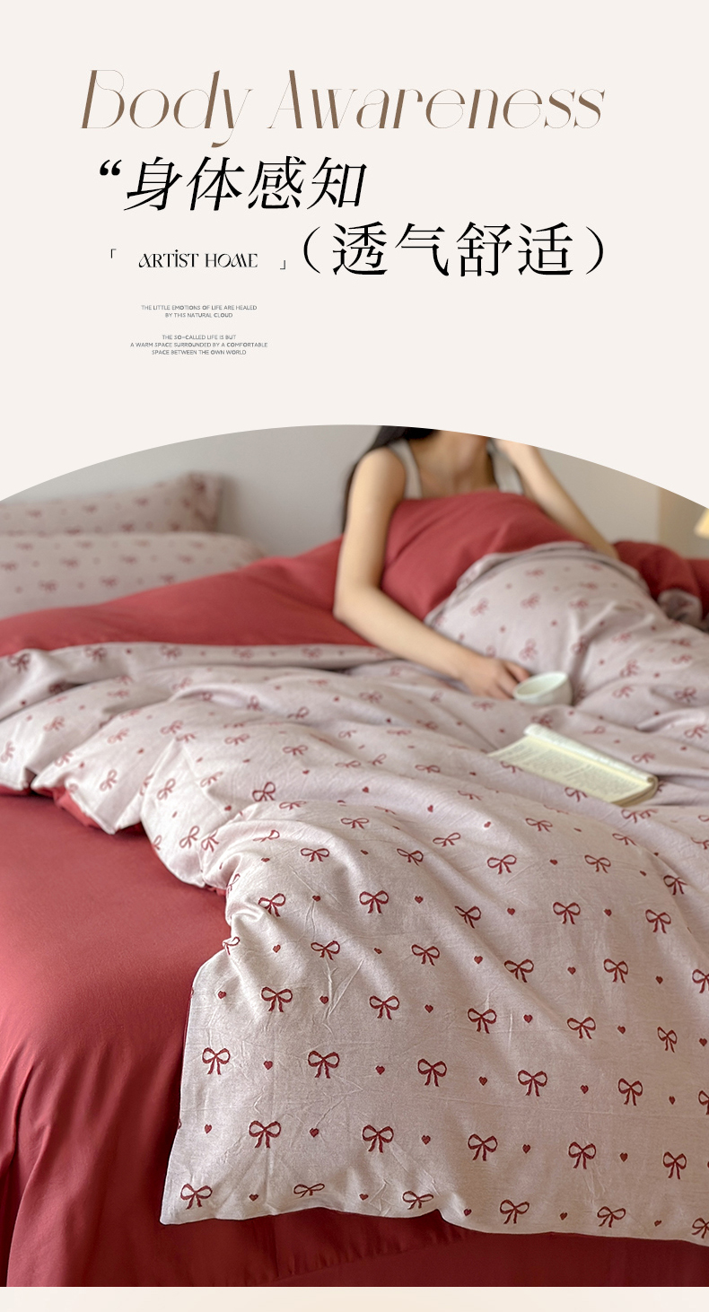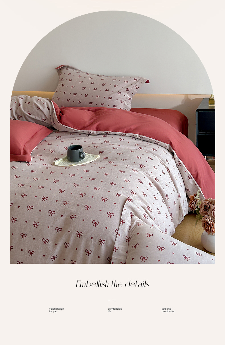 当前位置: 91家纺网 > 商品网购 > 床品套件 > 四件套 > 全棉普通四件套 > 禾时 2026新款全棉纯棉色织提花四件套 蝴蝶结(酒红)
