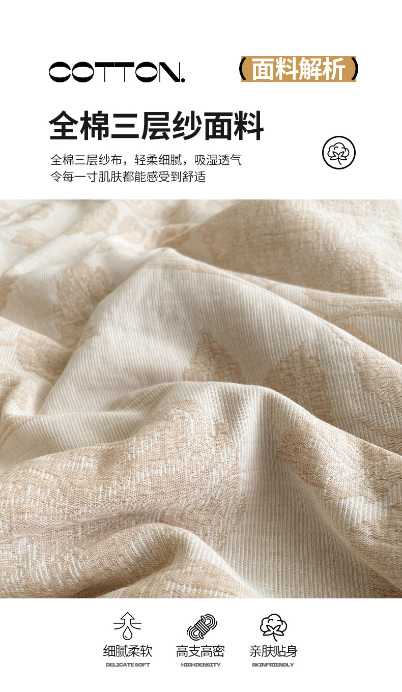 • 91家纺网 家纺一手货源 找家纺 吾诺家居 2026新款全棉色织提花三层纱夏被夏凉被空调被-华美 藤叶-咖